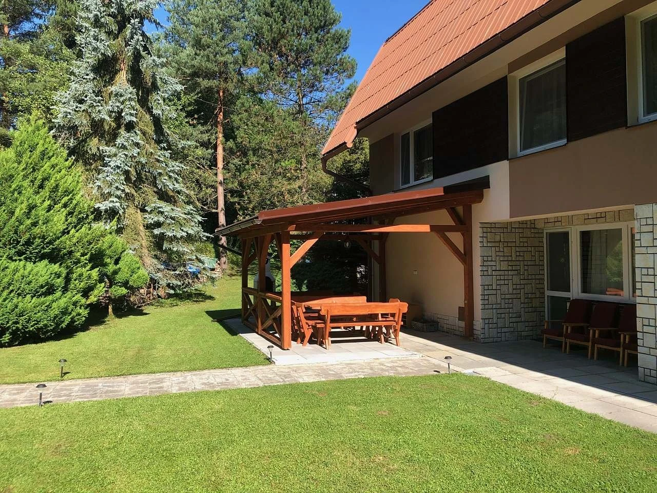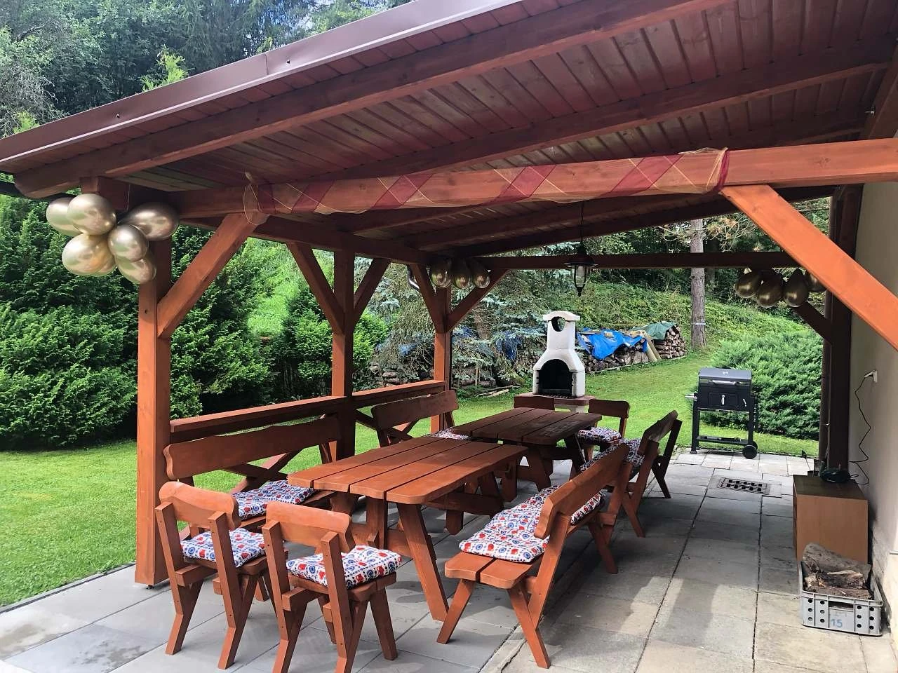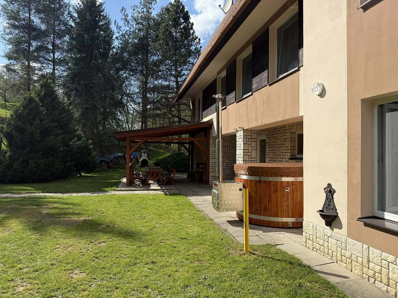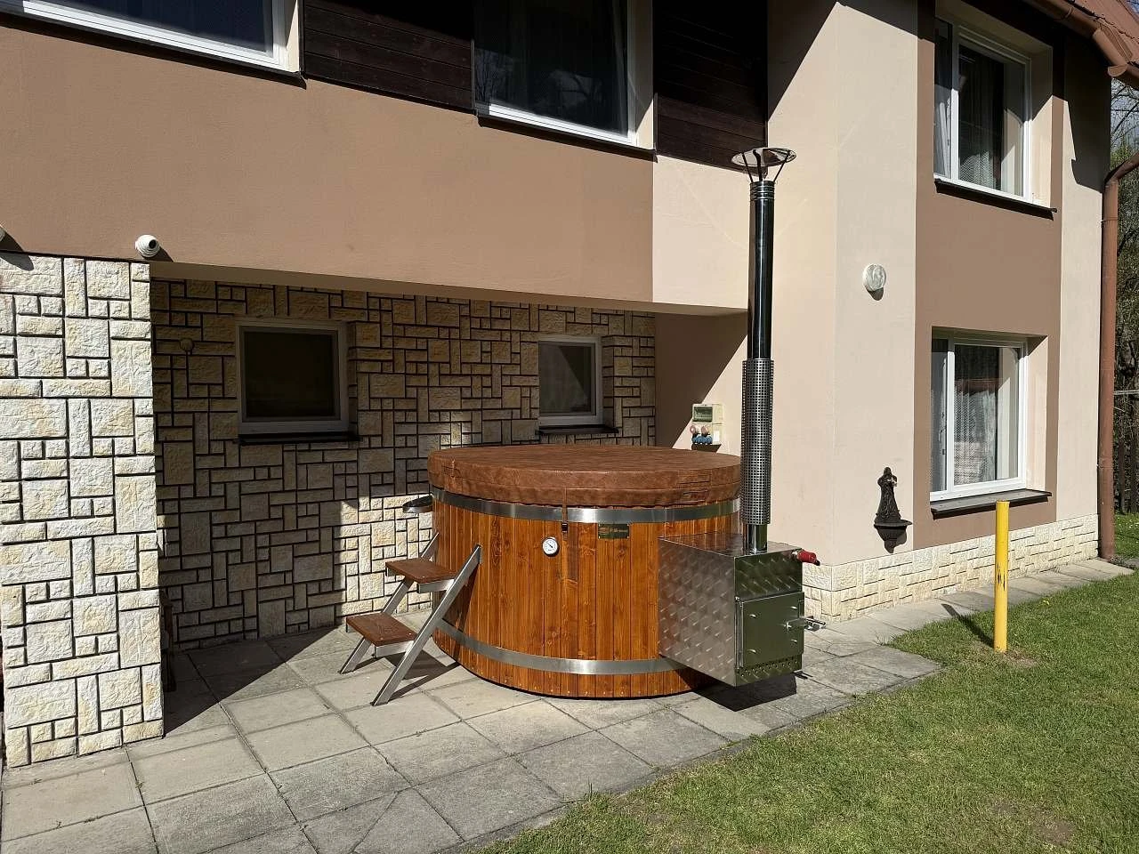 Součástí venkovního vybavení je zastřešená pergola s grilem, venkovní ohniště, venkovní bazén a koupací sud. Objekt je vhodný pro rodiny s dětmi, větší skupiny, firemní akce, teambuildingy a rodinné oslavy. Mazlíčci jsou povoleni. Ubytování poskytuje dostatečné soukromí a kapacitu pro skupinové pobyty během celého roku.