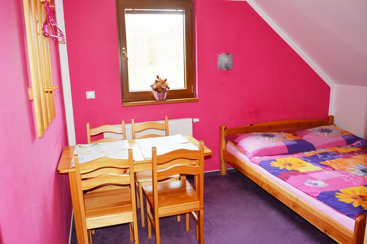 2100,- Kč/noc/růžový apartmán se sdílenou kuchyňkou pro 5 osob.