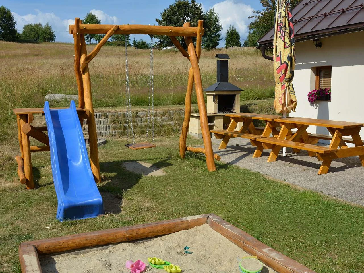 Chata pod Kapličkou v Hraběticích nabízí ubytování pro 1 až 29 osob v sedmi ložnicích. Tento nekuřácký objekt je ideální pro rodiny s dětmi a nachází se v blízkosti lyžařského střediska Severák. K dispozici je vyhřívaný a zastřešený bazén, venkovní terasa s grilem a dětské hřiště. Chata zahrnuje tři apartmány s vlastními kuchyňkami a koupelnami a dva apartmány se sdílenou kuchyňkou. Dva apartmány mají zvláštní ložnici nad pokojem, přístupnou buď po dřevěném schodišti se zábradlím nebo po schodišťovém žebříku. Součástí chaty je také společenská místnost a lyžárna se sušáky na boty. Parkování je možné přímo u domu. V blízkosti se nachází možnosti pro jízdu na koních (400 m), turistiku a cykloturistiku (50 m). Majitel objektu je přítomen na místě. Internetové připojení je dostupné prostřednictvím WiFi.
