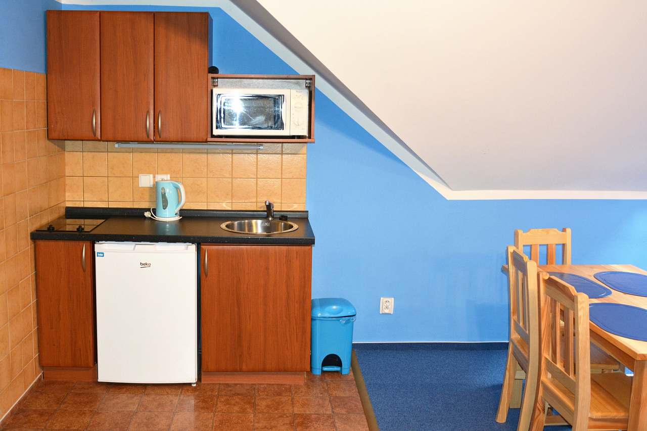 2500,- Kč/noc/modrý apartmán s vlastní kuchyňkou pro 4 osoby.