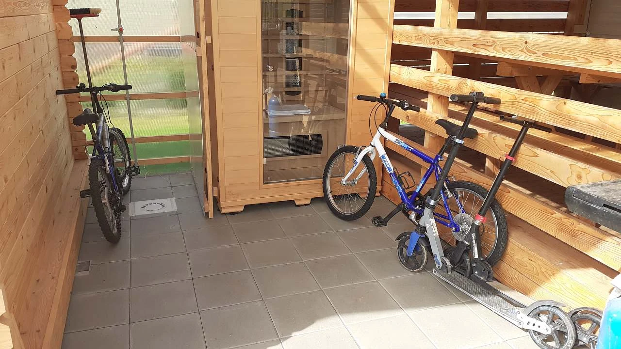 1× koupelna se sprchovým koutem a WC, infra zářič, zásuvka pro fén nebo holicí strojek.