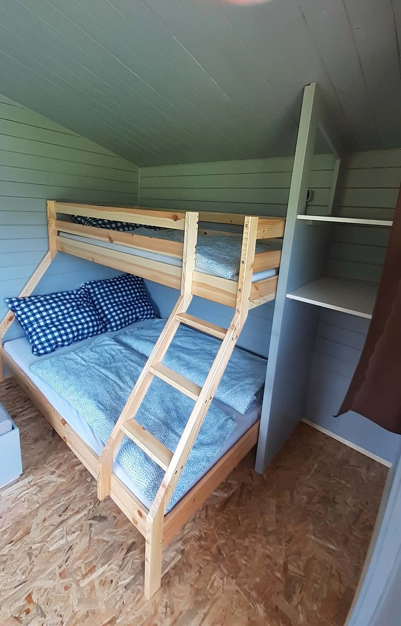 Ubytování je zajištěno v mobilheimu se dvěma dvoulůžkovými pokoji a jedním manželským apartmá. Součástí je také menší chatka, která rozšiřuje kapacitu objektu až na 10 osob.