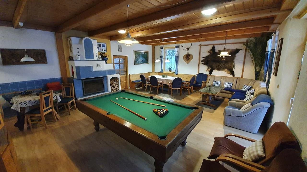 V objektu se nachází společenská místnost o velikosti 50 m², která je vybavena krbovými kamny, kulečníkem, televizí a satelitním příjmem.