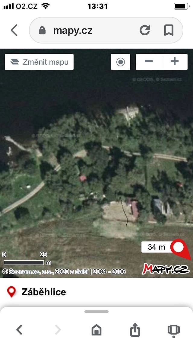 Chata se nachází v klidné osadě Záběhlice na poloostrově u Hřiměždic. Byla postavena v roce 1981 a v roce 2016 prošla rozsáhlou rekonstrukcí.
