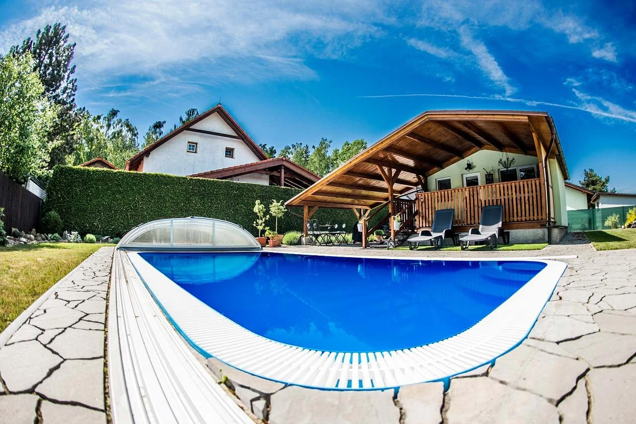Chata disponuje krytým vyhřívaným bazénem o rozměrech 6 × 3 × 1,3 m, který je propojen s terasou a vstupem do chaty. Vnitřní prostor zahrnuje obývací místnost s rozkládací pohovkou a kuchyňskou linkou. Ložnice poskytuje přímý vstup do koupelny se společným WC. Součástí pozemku je technická místnost s venkovním vstupem, kde se nachází kontejner na odpad a dřevo.