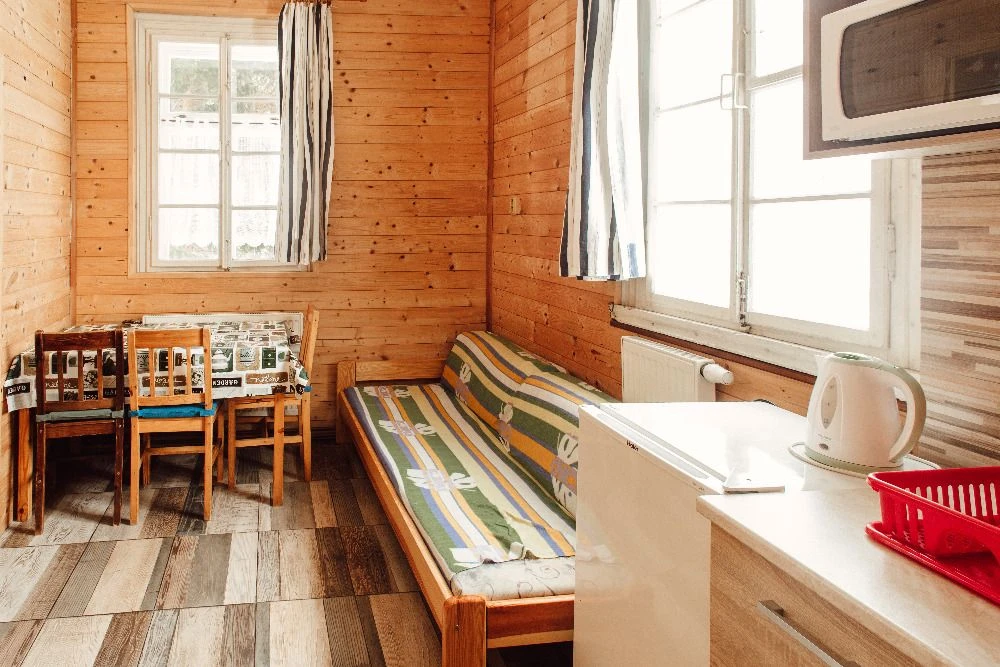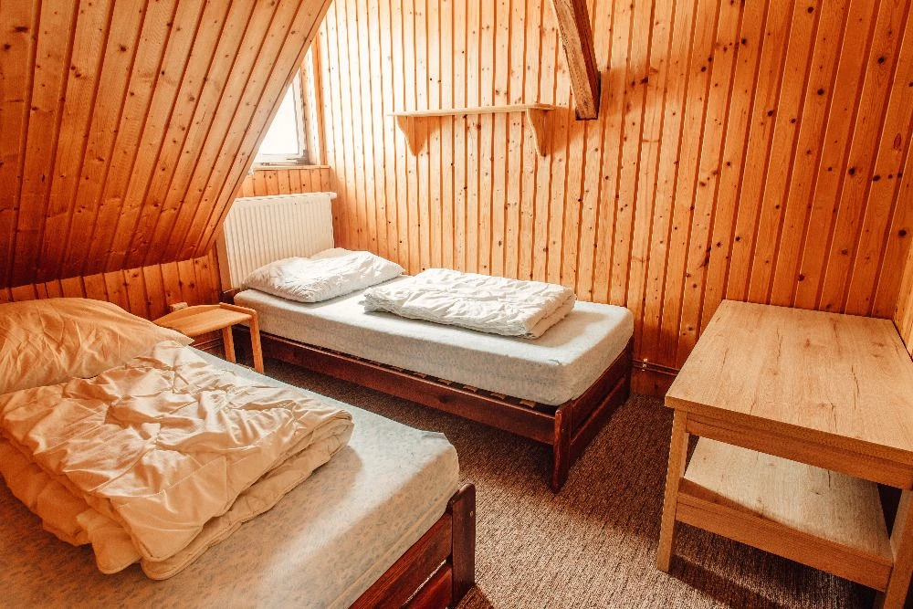 Rozpis pokojů zahrnuje různé konfigurace lůžek a některé pokoje mají vlastní kuchyňku. V letním období jsou dostupné turistické trasy a cyklotrasy. Blízko chaty je zastávka cyklobusů. V okolí je možné navštívit tvrz Skutina, polské trhy v Kudově, smažírny ryb a aquapark. V létě je k dispozici krytý altán, ohniště, gril a možnost zapůjčení venkovního bazénu.