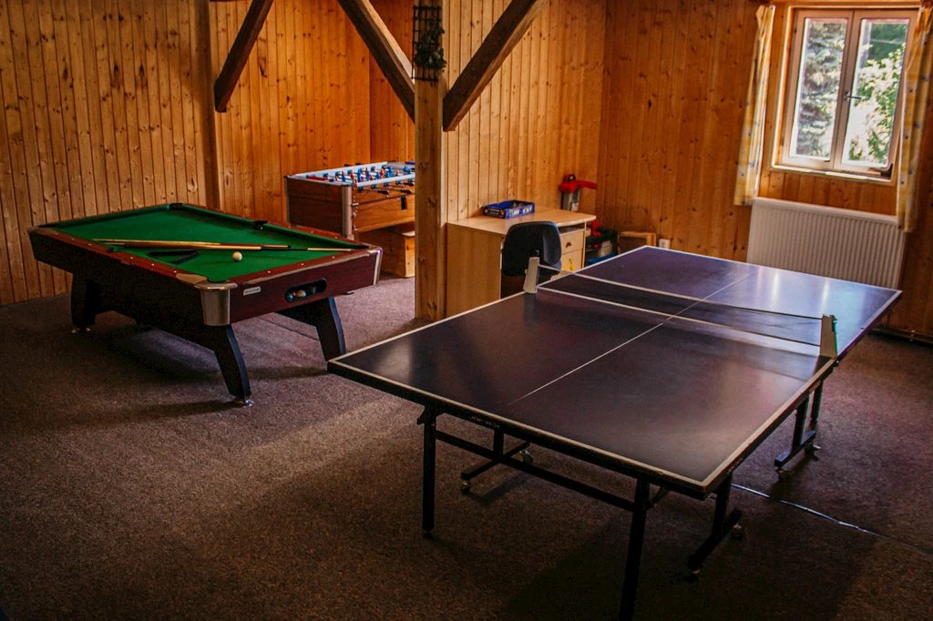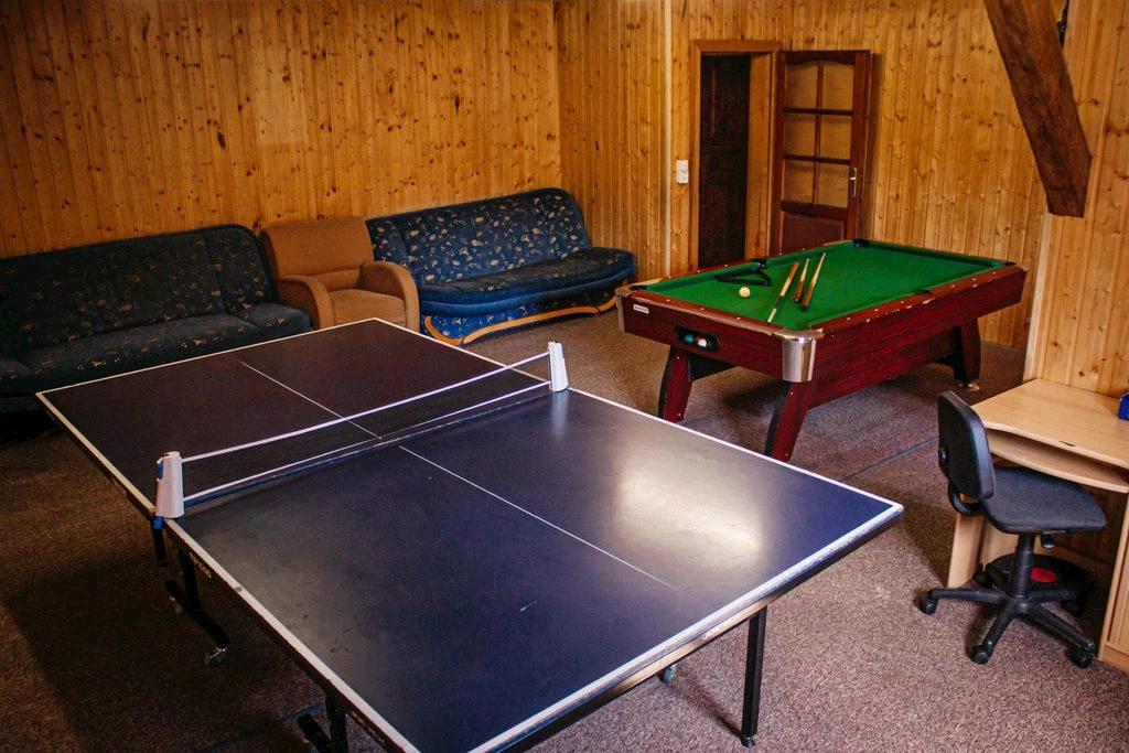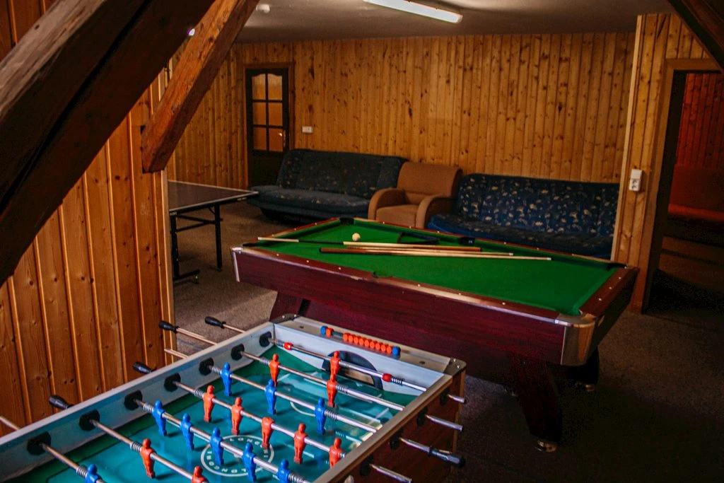 - Herna s ping pongem, kulečníkem, šipkami a fotbálkem