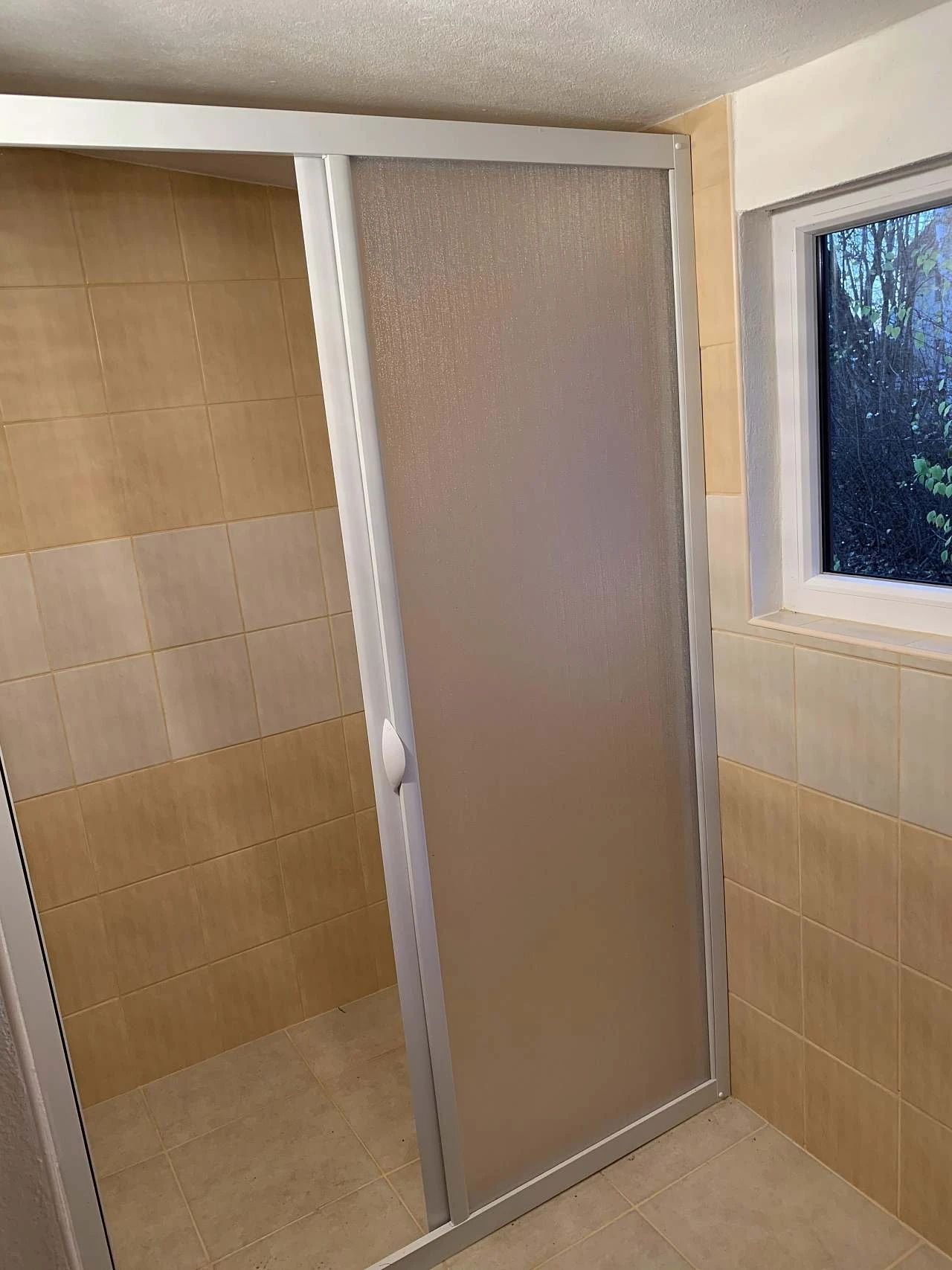 Sociální zařízení zahrnuje jednu koupelnu se sprchovým koutem a samostatné WC s umyvadlem.