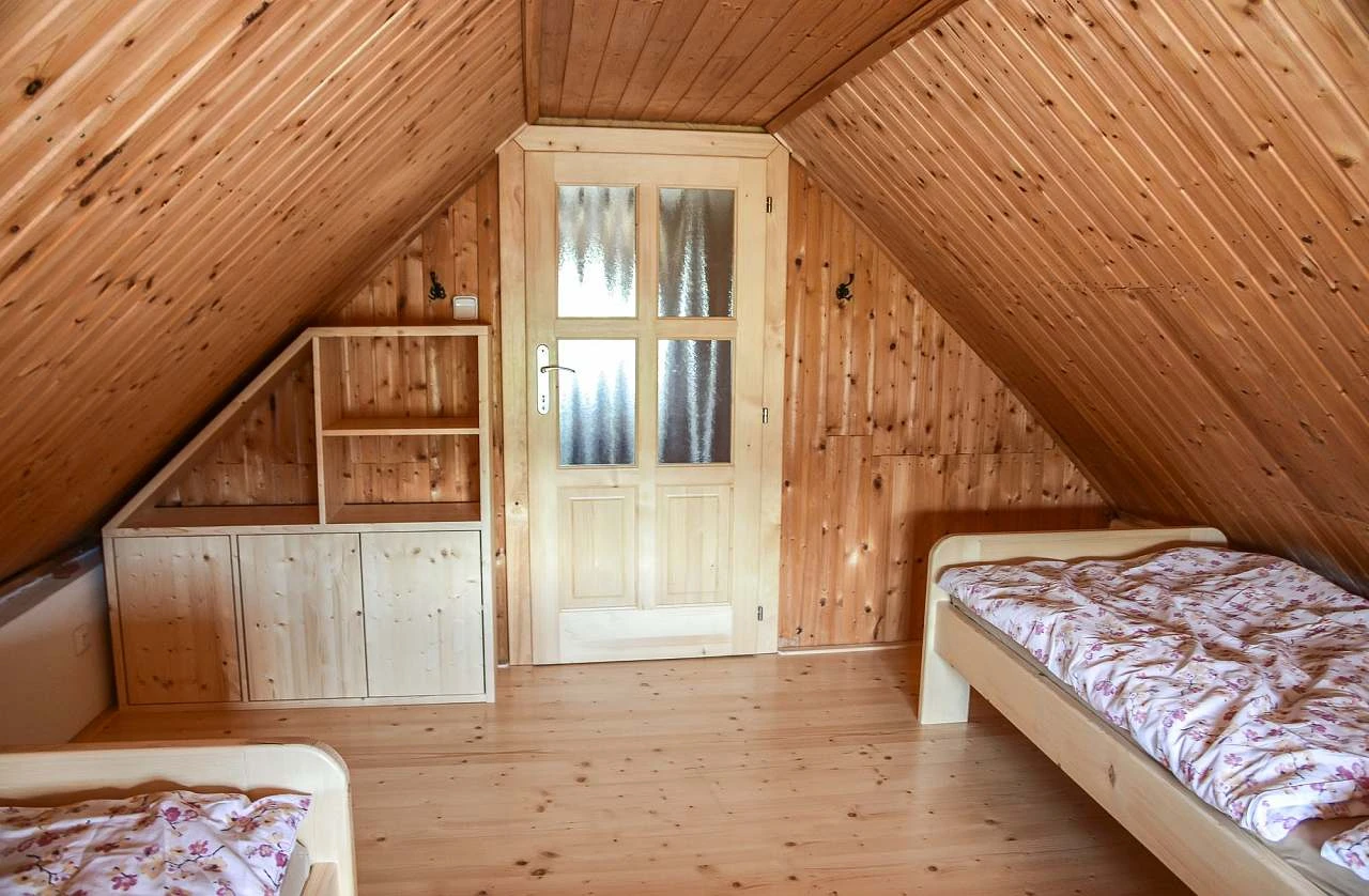 Chata v soukromí v Olešnici u Bouzova je vhodná pro ubytování 1 až 7 osob a nabízí dvě ložnice umístěné v podkroví. V jedné ložnici najdete manželskou postel a ve druhé tři samostatná lůžka. V přízemí je k dispozici rozkládací sedací souprava. V koupelně, která se nachází rovněž v přízemí, je sprchový kout, WC a pračka. Chata je vytápěna krbem. Parkování je možné přímo u objektu.