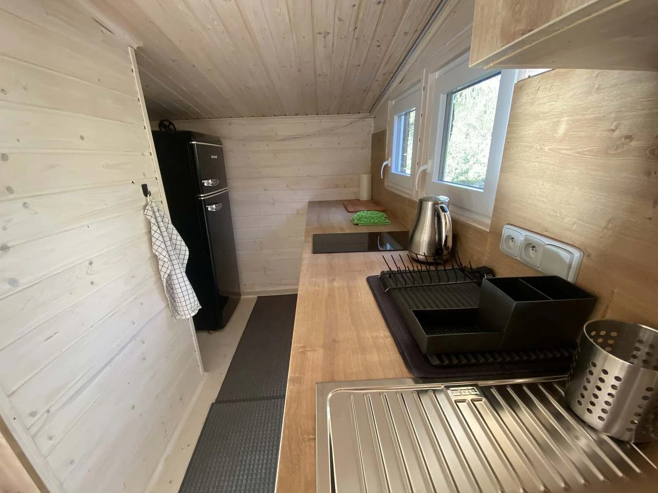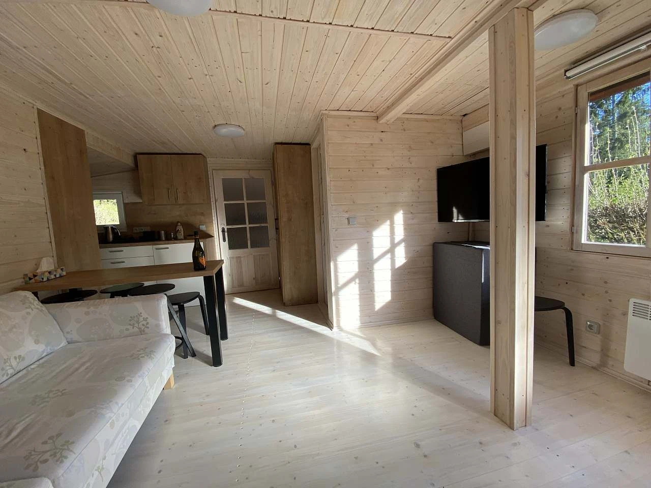 Chata nabízí celkovou kapacitu 3 lůžka + 2 přistýlky včetně 1 ložnice. V obývací místnosti se nachází 2 gauče, jídelní sezení a televize. Propojený je s kuchyňským koutem, který je vybaven indukční varnou deskou, mikrovlnnou troubou, rychlovarnou konvicí, lednicí s mrazákem a kávovarem. Součástí chaty je koupelna se sprchou, umyvadlem a toaletou.