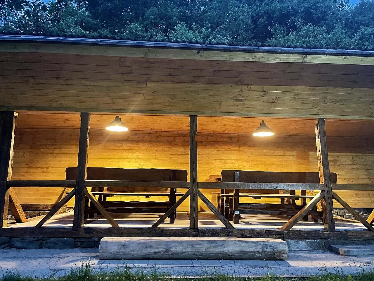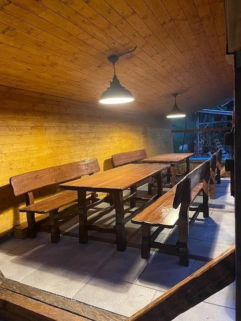 K dispozici je také venkovní zastřešené posezení s krbem a udírnou a výčepní zařízení.