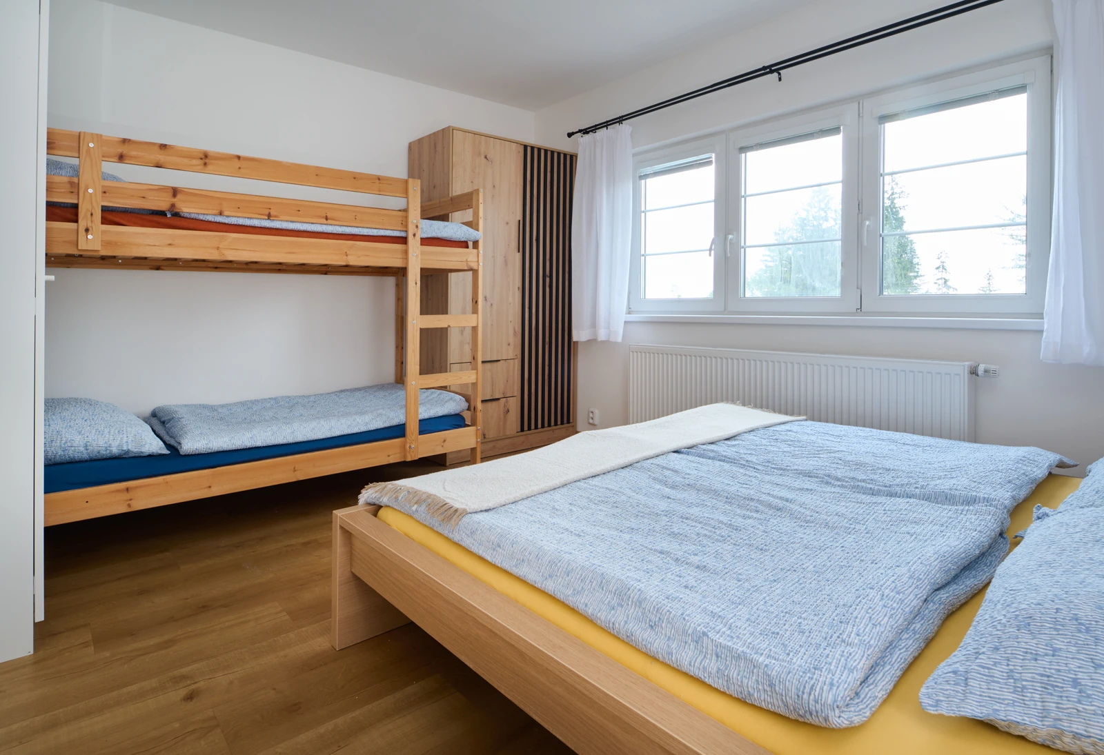 - Pokoj č. 1 (přízemí): manželské lůžko + palanda