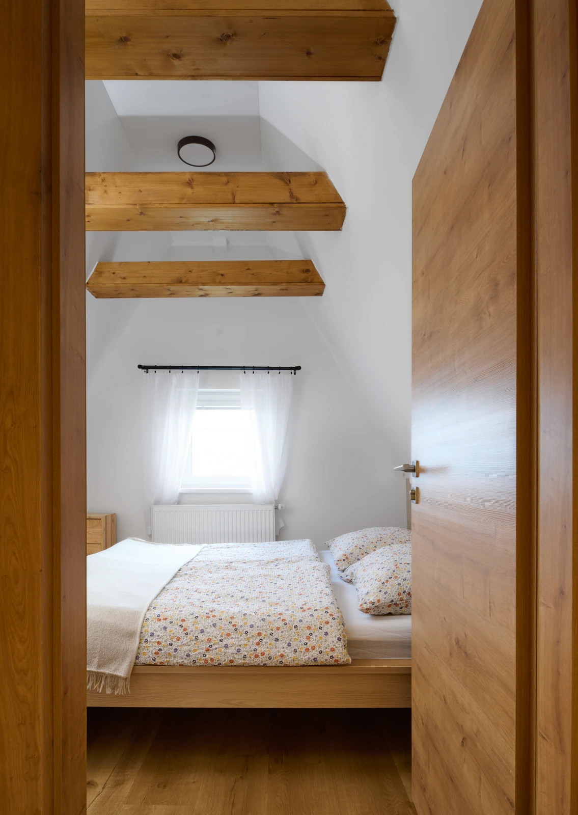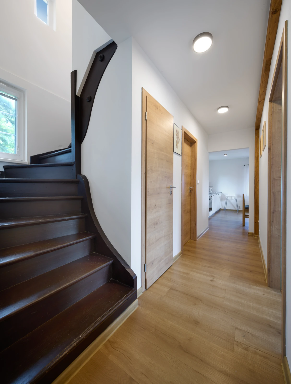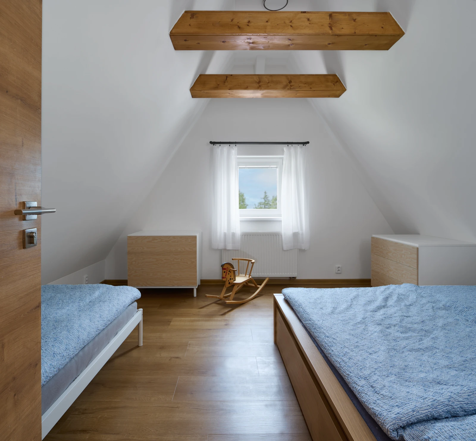 - Pokoj č. 2 (1. patro): manželské dvoulůžko + přistýlka