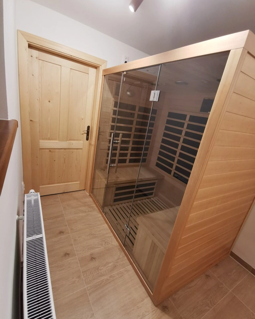 Chata je vytápěna plynovým kotlem s radiátory, což zajišťuje tepelný komfort i v chladných měsících. Pro dokonalý relax mohou hosté využít saunu, která je součástí wellness zóny. Ubytování je vhodné pro rodiny s dětmi, sportovní nadšence i skupiny přátel. Minimální délka pobytu se liší dle sezóny, v hlavní zimní a letní sezóně je vyžadován pobyt na minimálně 2 - 7 nocí.