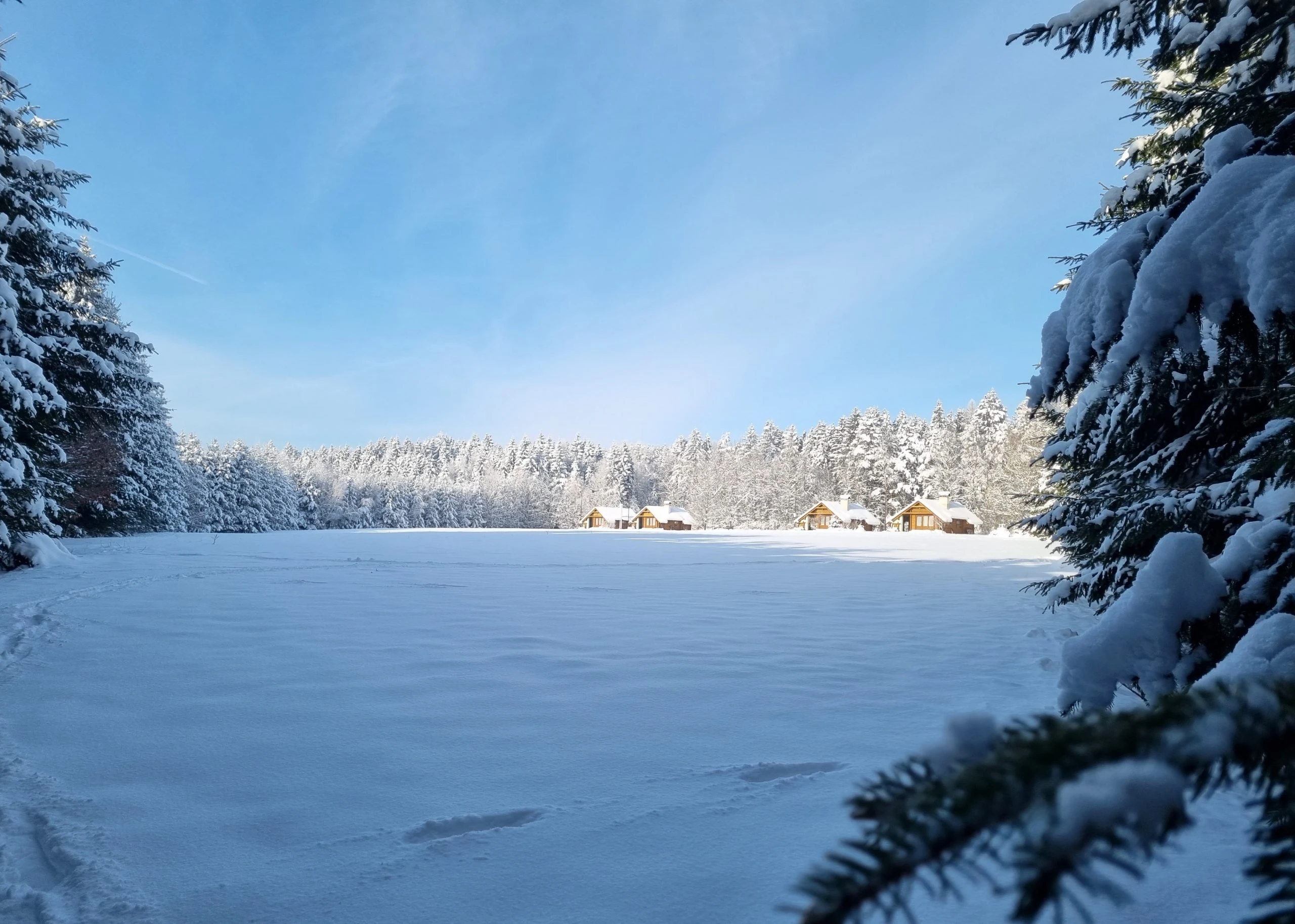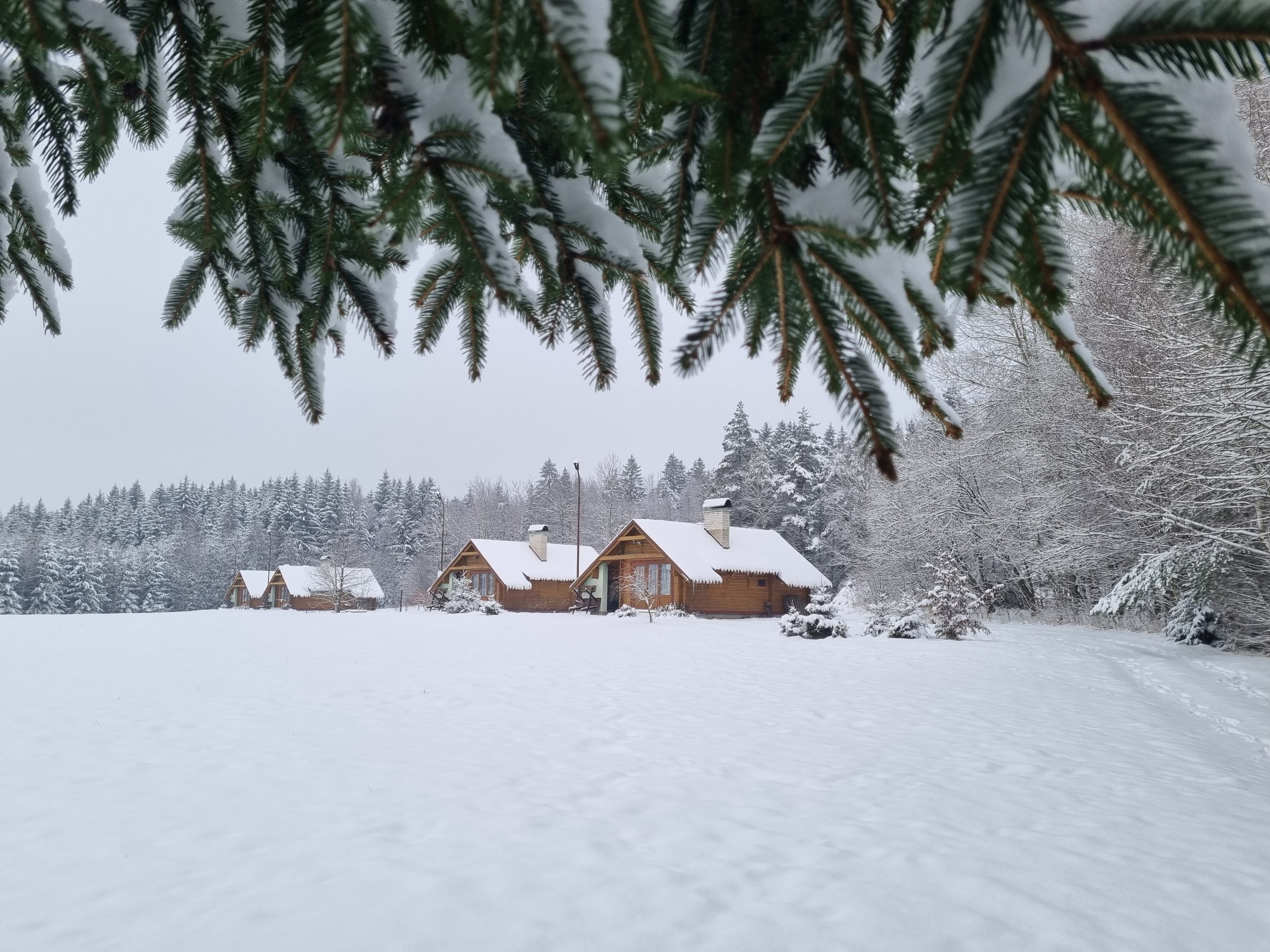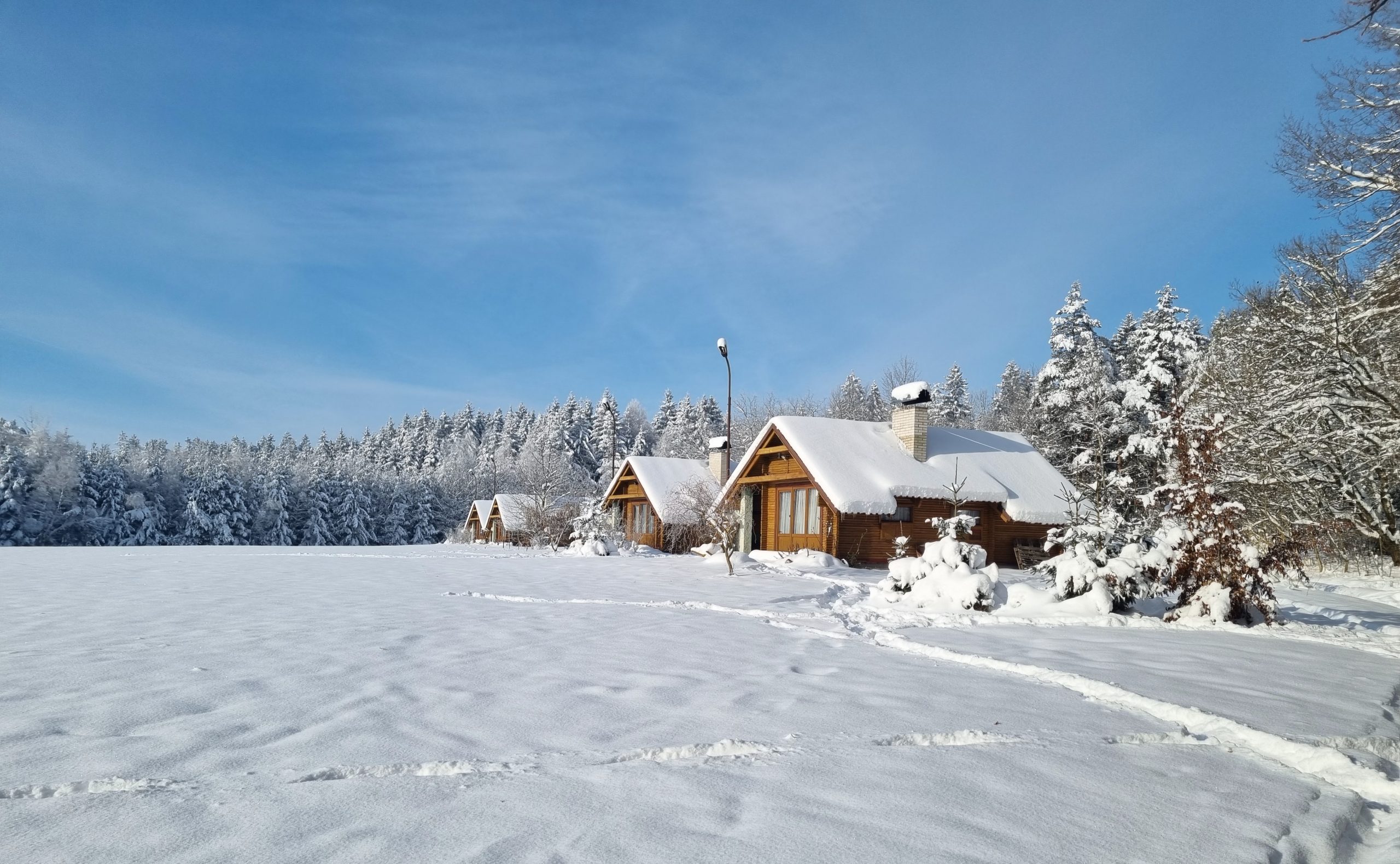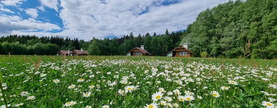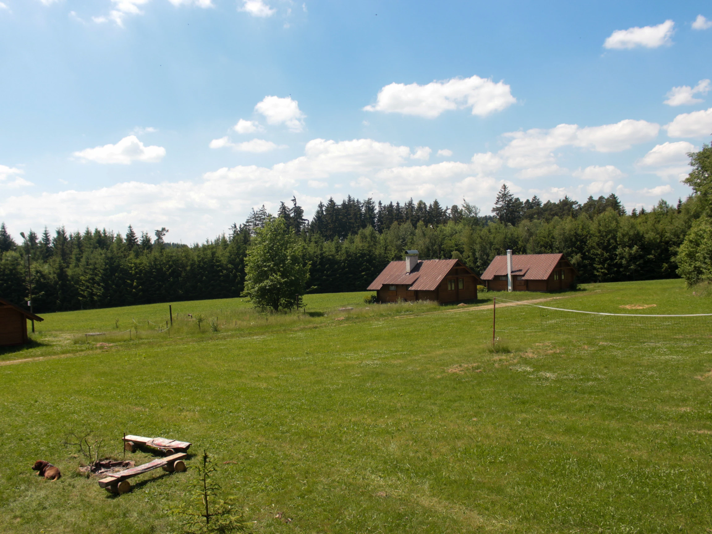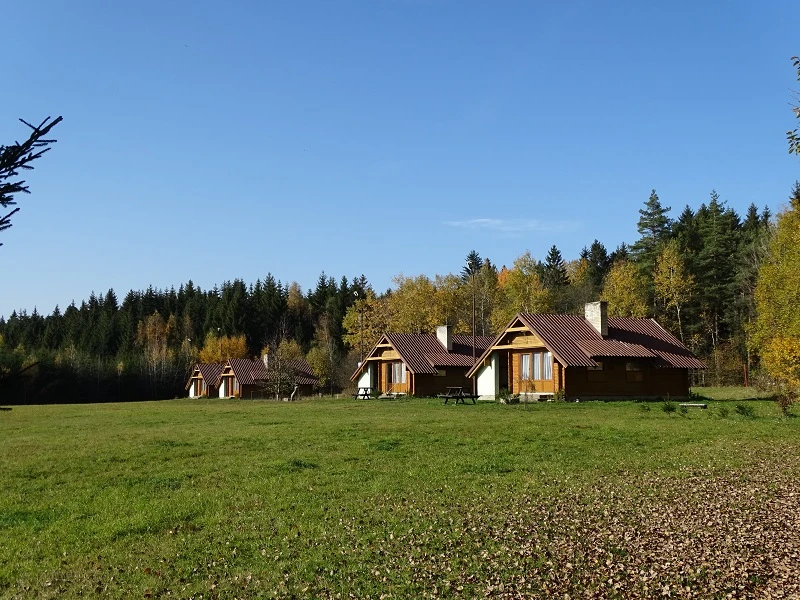 V areálu se nachází 4 dřevěné chaty o velikosti cca 40 m², se zděnou podezdívkou. Chaty jsou umístěny na rozlehlé louce na samotě uprostřed lesa, bez průjezdu veřejné komunikace – vjezd mají pouze hosté.Nové Město na Moravě je vzdálené 5 km, Žďár nad Sázavou 7 km.Každá chata je určena pro 4 osoby s možností ubytování až 6 osob díky rozkládací sedačce v hlavní místnosti.Dispozice a vybavení chatypředsíňhlavní obytná místnostrozkládací sedačka (plocha lůžka cca 160 cm – přistýlka pro 2 osoby)konferenční stolekkřeslokomoda nebo skříňtelevizefrancouzské okno se vstupem na loukukuchyňský koutelektrický dvouplotýnkový vařičmikrovlnná troubavarná konvicelednice s mrazákemzákladní kuchyňské nádobí pro 6 osob (příbory, sklenice, hrnky, talíře, hrnce, pánev)2 ložnice, každá se dvěma samostatnými lůžkynoční stoleklampičkaložnice jsou od hlavní místnosti odděleny závěsemkoupelna se sprchovým koutem a WCTechnické a provozní informacevoda je přiváděna z vlastního vrtu (laboratorně ověřená jako pitná)v zimním období jsou chaty vytápěny kamny typu Petra a elektrickými přímotopydřevo na topení je k dispozici v období říjen–dubenWi-Fi je dostupná na parkovišti u hlavní budovy a v apartmánech (ne přímo v chatách)ve všech chatách platí přísný zákaz kouřeníVenkovní vybavení a areálkaždá chata má vlastní ohniště a venkovní posezeník dispozici je sekerka a pilaza chatami:travnaté hřiště s volejbalovou sítítrampolínadětská houpačkaparkování zdarma přímo u chatek (mezi chatami č. 1–2 a 3–4 nebo na př