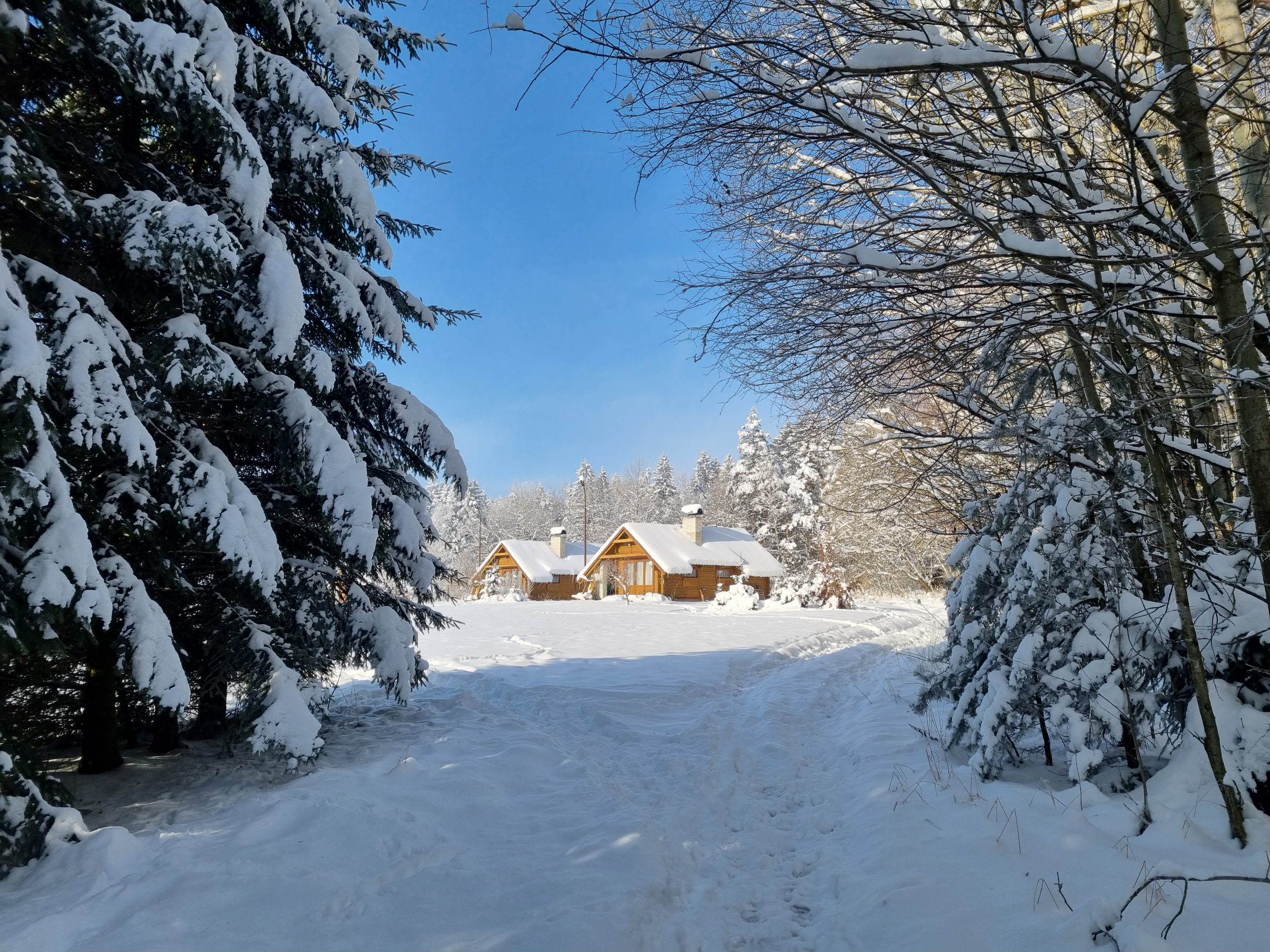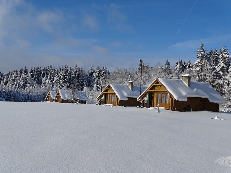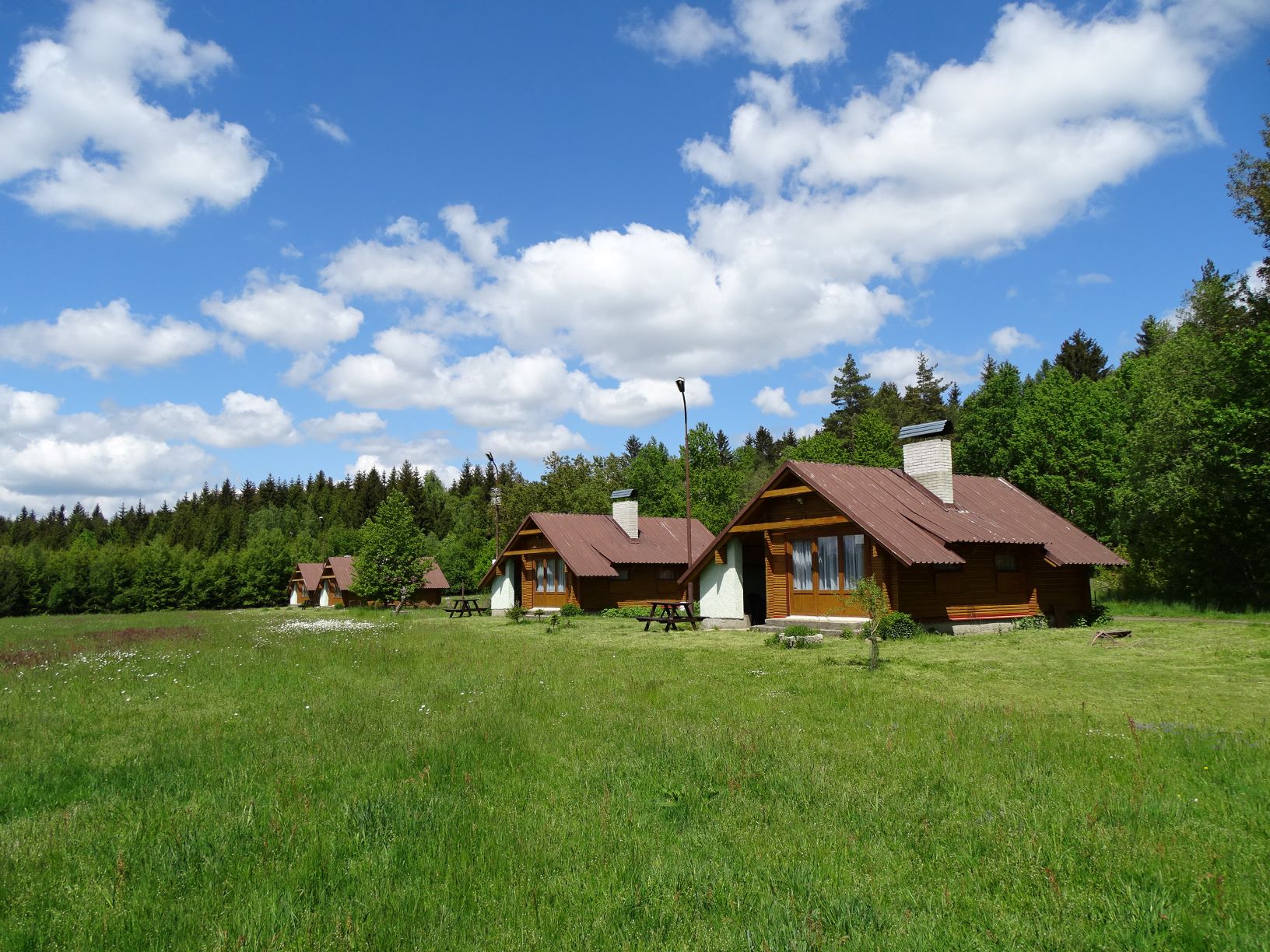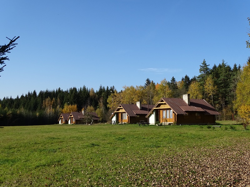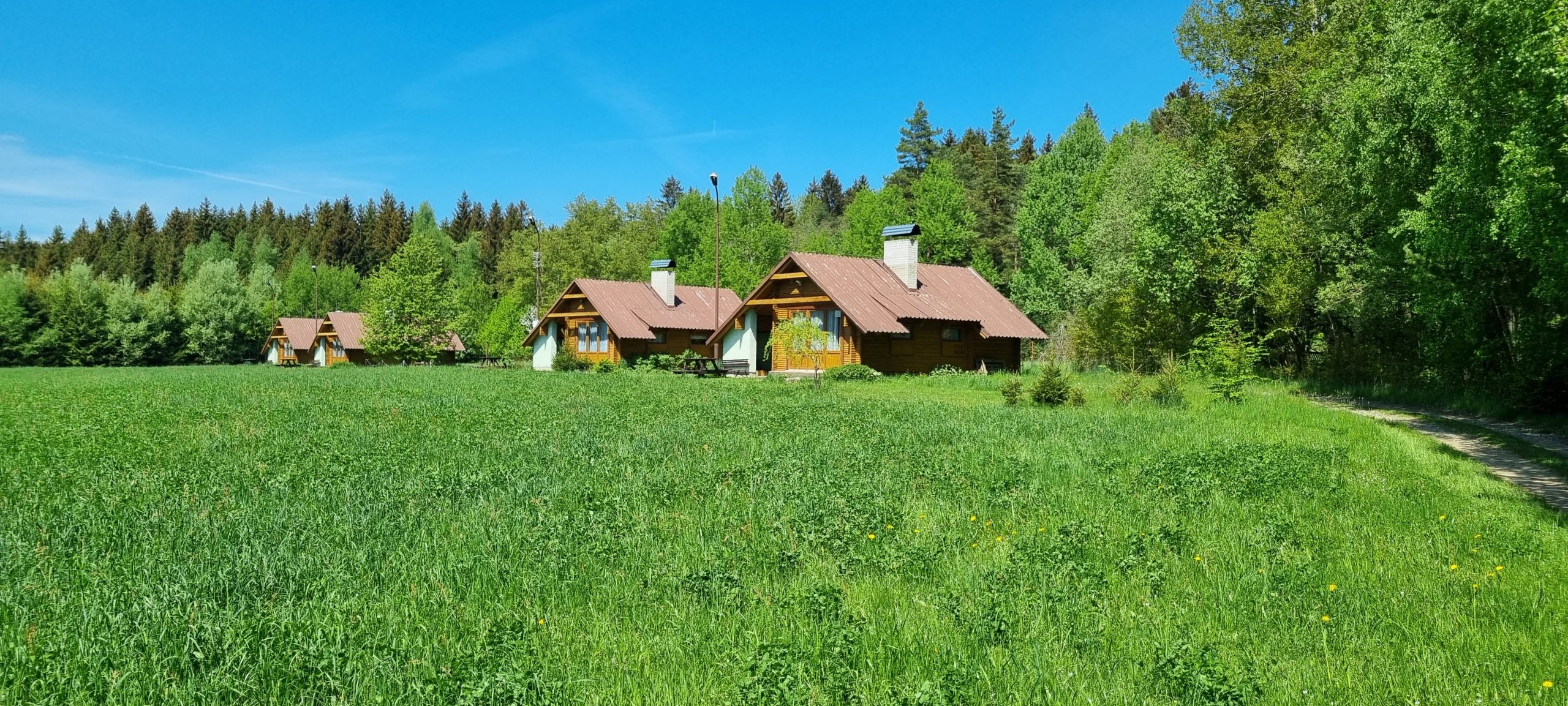 V areálu se nachází 4 dřevěné chaty o velikosti cca 40 m², se zděnou podezdívkou. Chaty jsou umístěny na rozlehlé louce na samotě uprostřed lesa, bez průjezdu veřejné komunikace – vjezd mají pouze hosté.Nové Město na Moravě je vzdálené 5 km, Žďár nad Sázavou 7 km.Každá chata je určena pro 4 osoby s možností ubytování až 6 osob díky rozkládací sedačce v hlavní místnosti.Dispozice a vybavení chatypředsíňhlavní obytná místnostrozkládací sedačka (plocha lůžka cca 160 cm – přistýlka pro 2 osoby)konferenční stolekkřeslokomoda nebo skříňtelevizefrancouzské okno se vstupem na loukukuchyňský koutelektrický dvouplotýnkový vařičmikrovlnná troubavarná konvicelednice s mrazákemzákladní kuchyňské nádobí pro 6 osob (příbory, sklenice, hrnky, talíře, hrnce, pánev)2 ložnice, každá se dvěma samostatnými lůžkynoční stoleklampičkaložnice jsou od hlavní místnosti odděleny závěsemkoupelna se sprchovým koutem a WCTechnické a provozní informacevoda je přiváděna z vlastního vrtu (laboratorně ověřená jako pitná)v zimním období jsou chaty vytápěny kamny typu Petra a elektrickými přímotopydřevo na topení je k dispozici v období říjen–dubenWi-Fi je dostupná na parkovišti u hlavní budovy a v apartmánech (ne přímo v chatách)ve všech chatách platí přísný zákaz kouřeníVenkovní vybavení a areálkaždá chata má vlastní ohniště a venkovní posezeník dispozici je sekerka a pilaza chatami:travnaté hřiště s volejbalovou sítítrampolínadětská houpačkaparkování zdarma přímo u chatek (mezi chatami č. 1–2 a 3–4 nebo na př