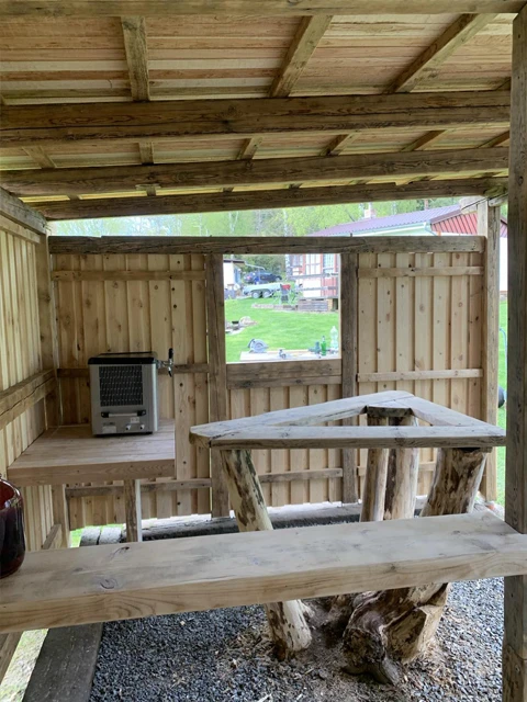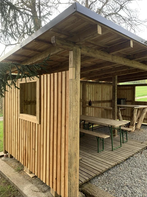 Součástí areálu je nově pergola se samoobslužným výčepem, kde je k dispozici točené pivo a prosecco. Platba probíhá buď v hotovosti u majitelů, nebo přes QR kód přímo na místě.