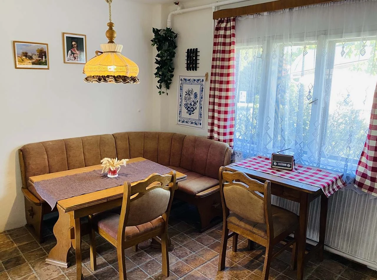 Apartmán je samostatná přízemní budova s celoročním provozem a kapacitou 7 lůžek. Dispozice apartmánuSamostatná místnost se sociálním zařízením:WCumyvadlovanaObytná místnost:jídelní stůlplně vybavená kuchyňka:lednicesporákmikrovlnná troubavarná konvicetoastovačběžné nádobí (skleničky, hrníčky, talíře, příbory, hrnce)Dvě ložnice (lůžkoviny jsou součástí):ložnice: manželská postel a palanda (3 lůžka)ložnice: manželská postel a jednolůžko (4 lůžka) VytápěníV chladnějším období je možné u majitele objednat zapojení plynového kotle.Spotřeba plynu je účtována při odjezdu.