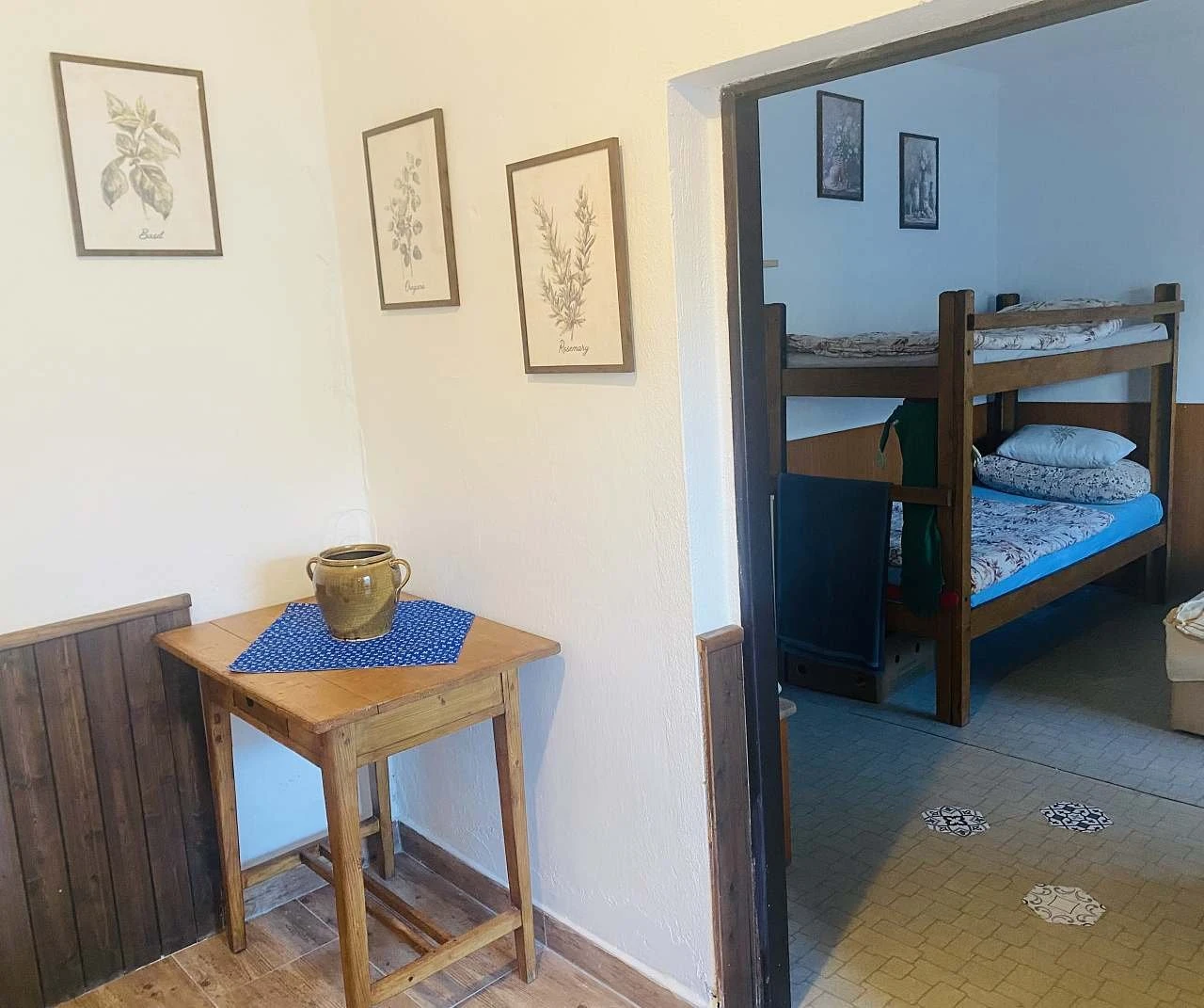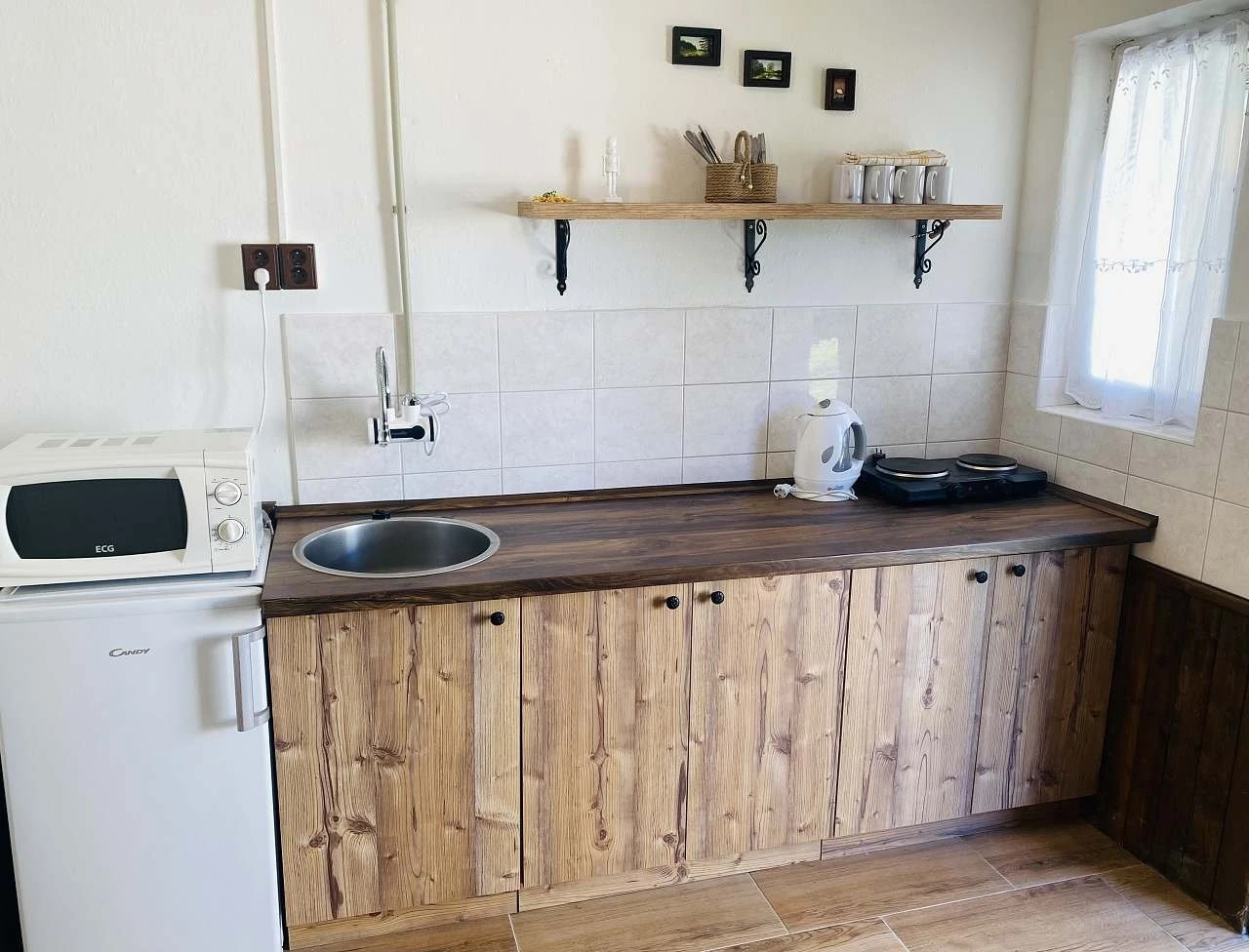 Apartmán je samostatná jednopatrová budova s celoročním provozem a kapacitou 8 lůžek. Dispozice apartmánuPřízemívstupní částjídelní stůlplně vybavená kuchyňka:lednicedvouplotýnkový vařičmikrovlnná troubavarná konvicetopinkovačběžné nádobí (skleničky, hrníčky, talíře, příbory, hrnce)Patrodvě ložnice:ložnice: dvě manželské postele (160×200 cm a 180×200 cm)ložnice: dvě palandy (celkem 4 lůžka)lůžkoviny jsou součástí vybavenív jedné z ložnic se nachází chytrá televizevlastní sociální zařízení:WCumyvadlosprchový kout VytápěníV chladnějším období je možné u majitele objednat zapojení plynového kotle.Spotřeba plynu je účtována při odjezdu.