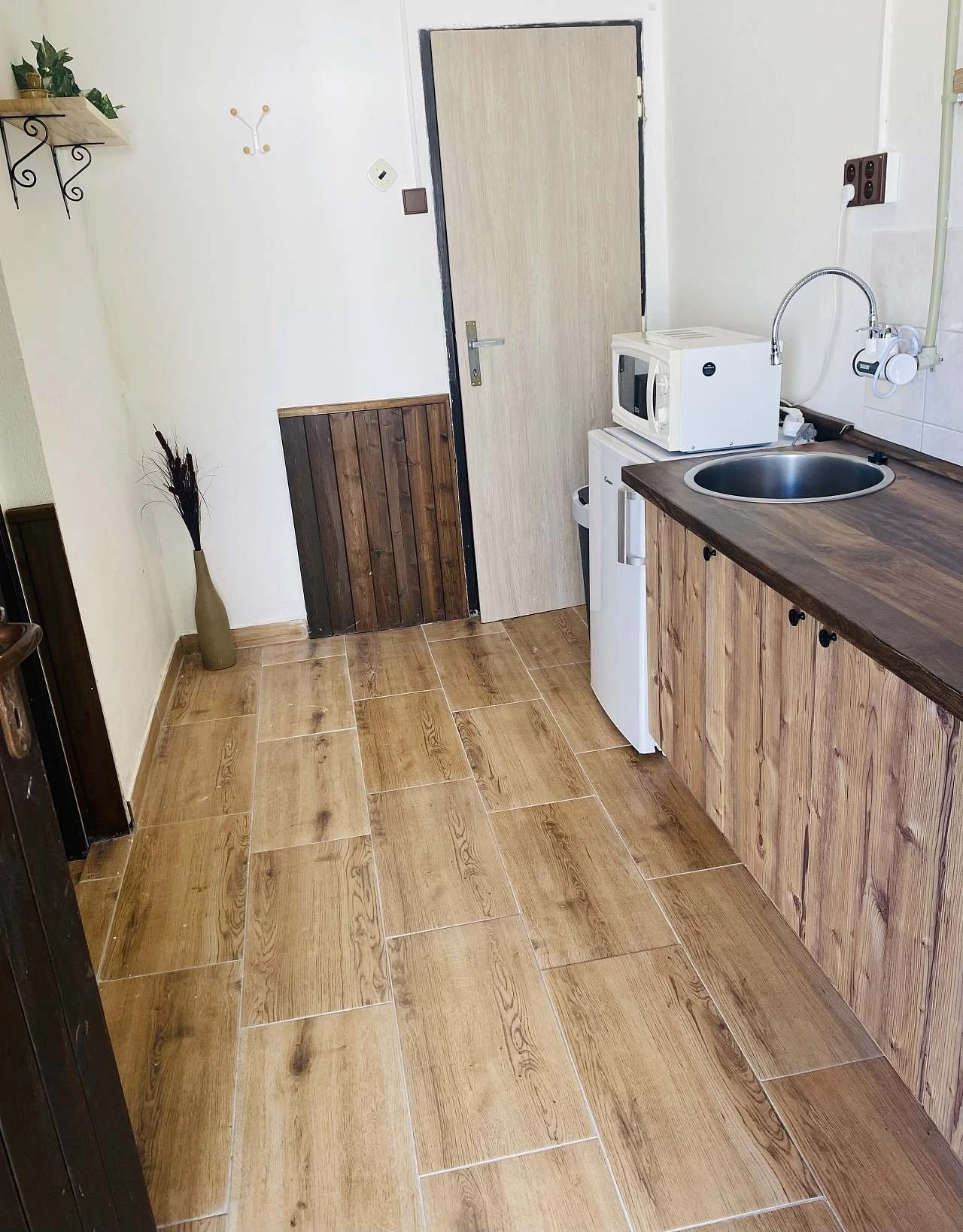 - Samostatná místnost s kuchyňským koutem: