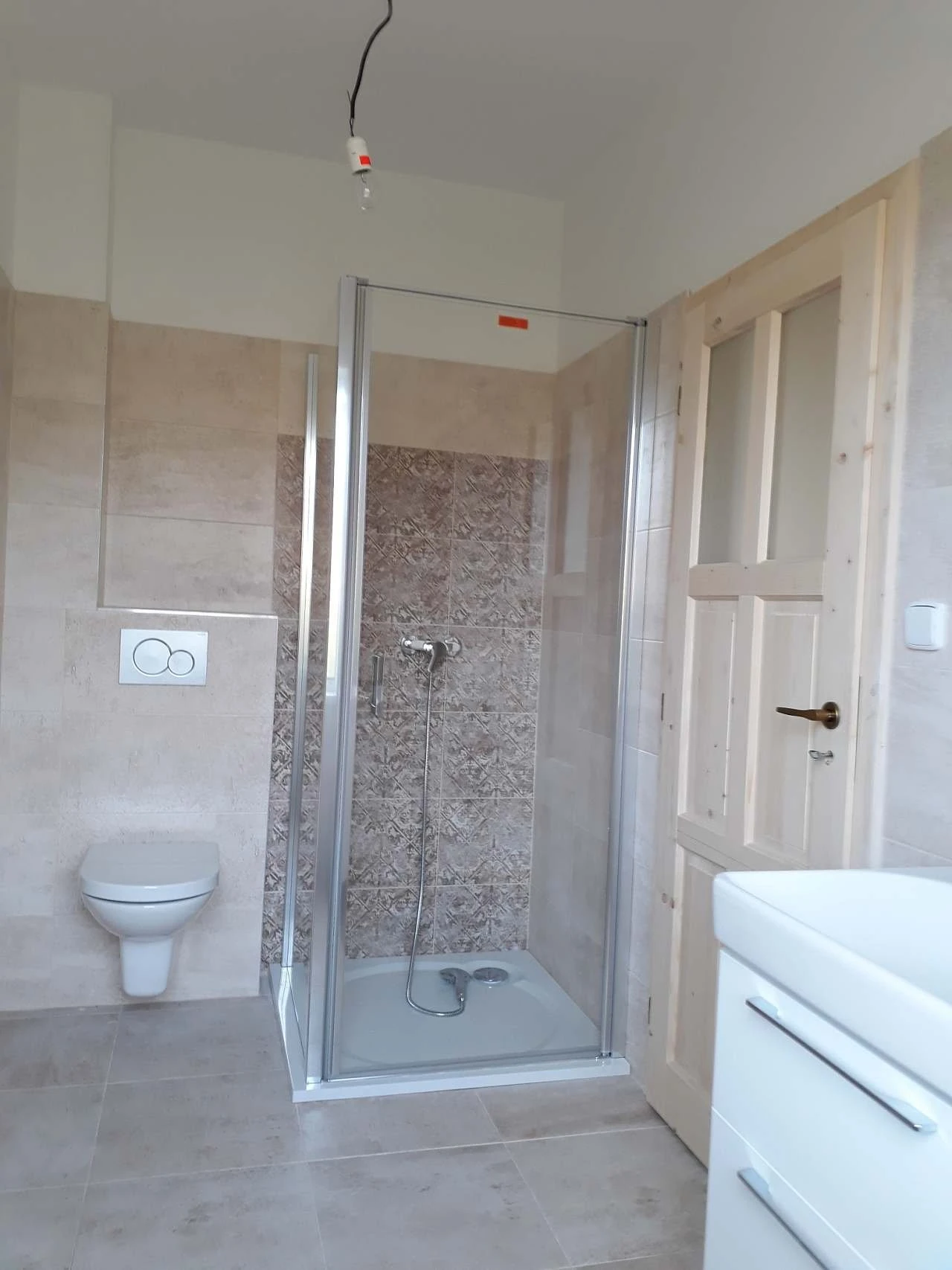 Vytápění objektu je řešeno podlahovým topením, v menších pokojích přímotopy. Krbová kamna jsou k dispozici, palivové dřevo je za poplatek. Koupelna je vybavena sprchovým koutem, WC, umyvadlem a pračkou.