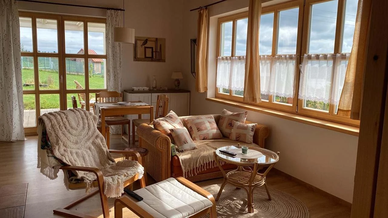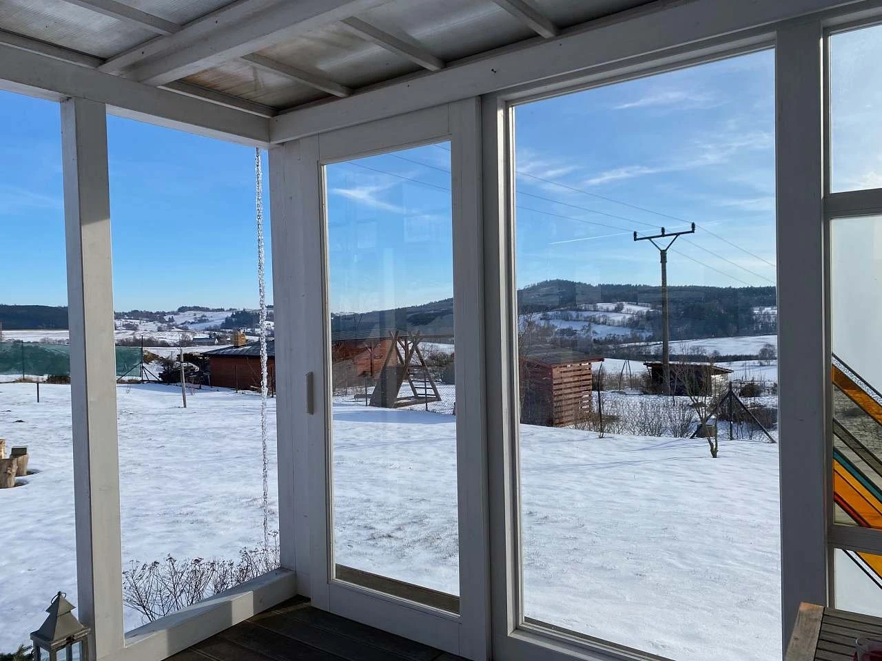 Rodinný domek ve Sněžném na Vysočině je zánovní dřevostavba vhodná pro rodinu s dětmi nebo menší skupinu přátel. Objekt nabízí dvě ložnice, obývací pokoj s kuchyní a rozkládací sedačkou, koupelnu s WC a venkovní terasu. Součástí obytné kuchyně jsou krbová kamna.