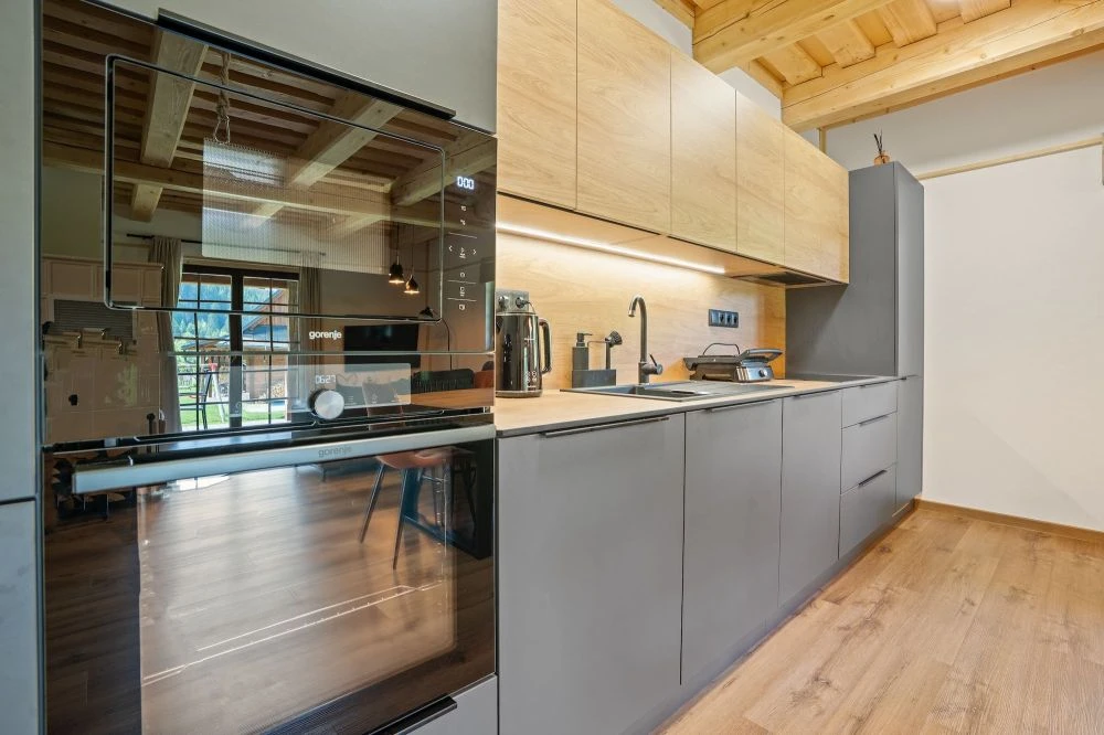 - Plně vybavená kuchyně: myčka, pračka, lednice, trouba, mikrovlnka, varná deska, varná konvice, toustovač, kávovar Nespresso