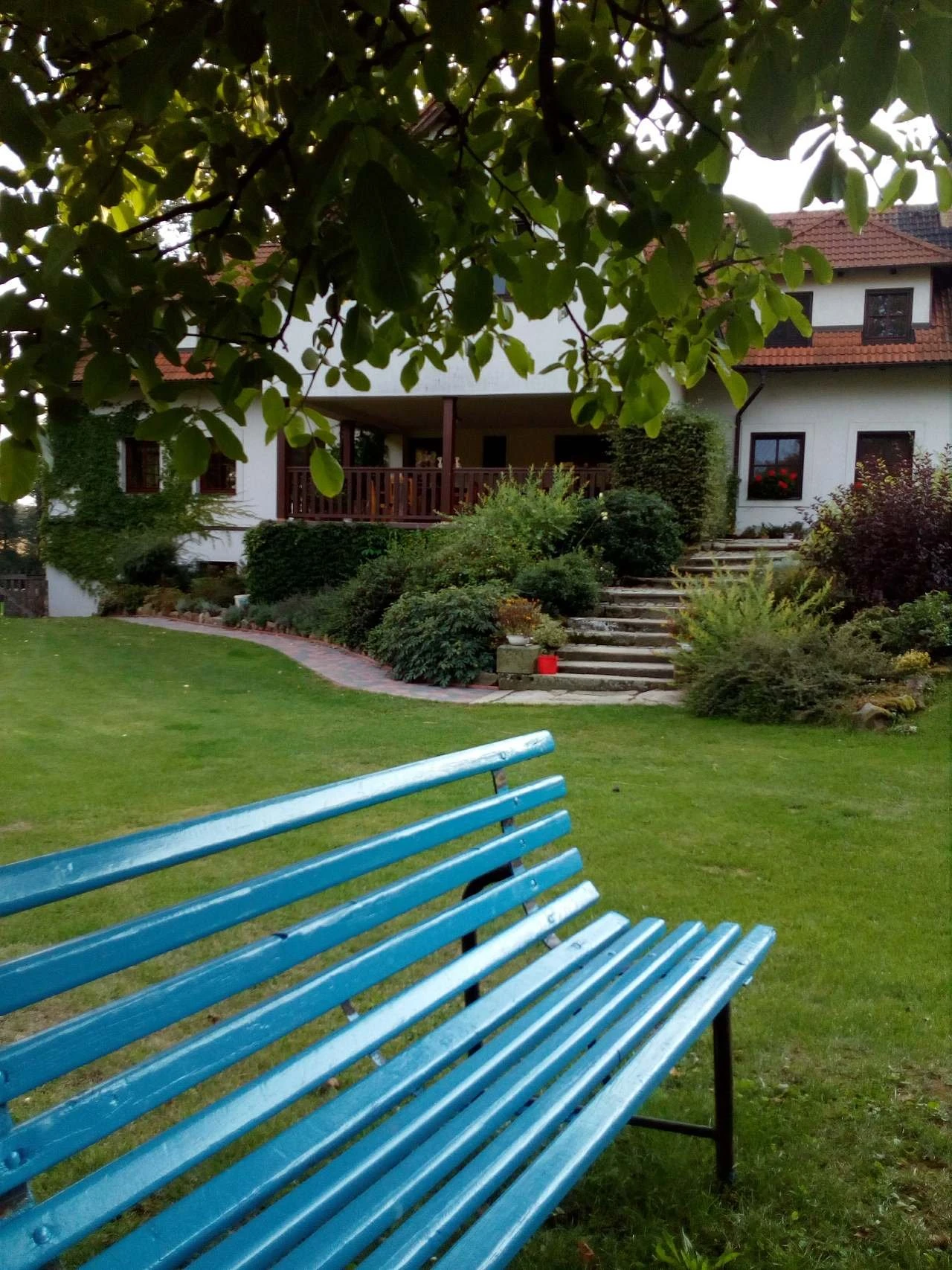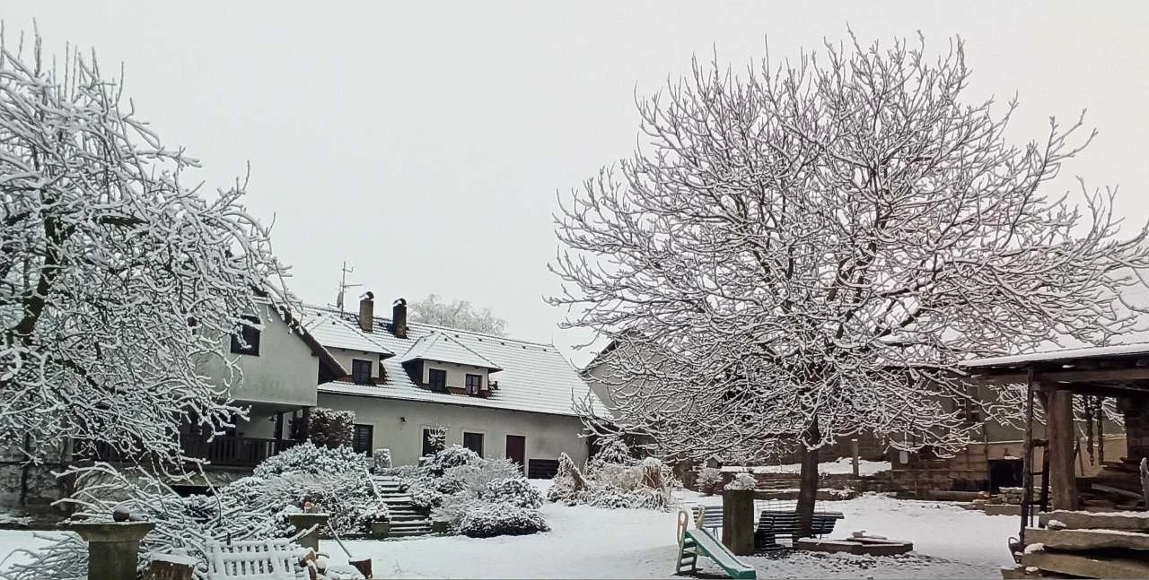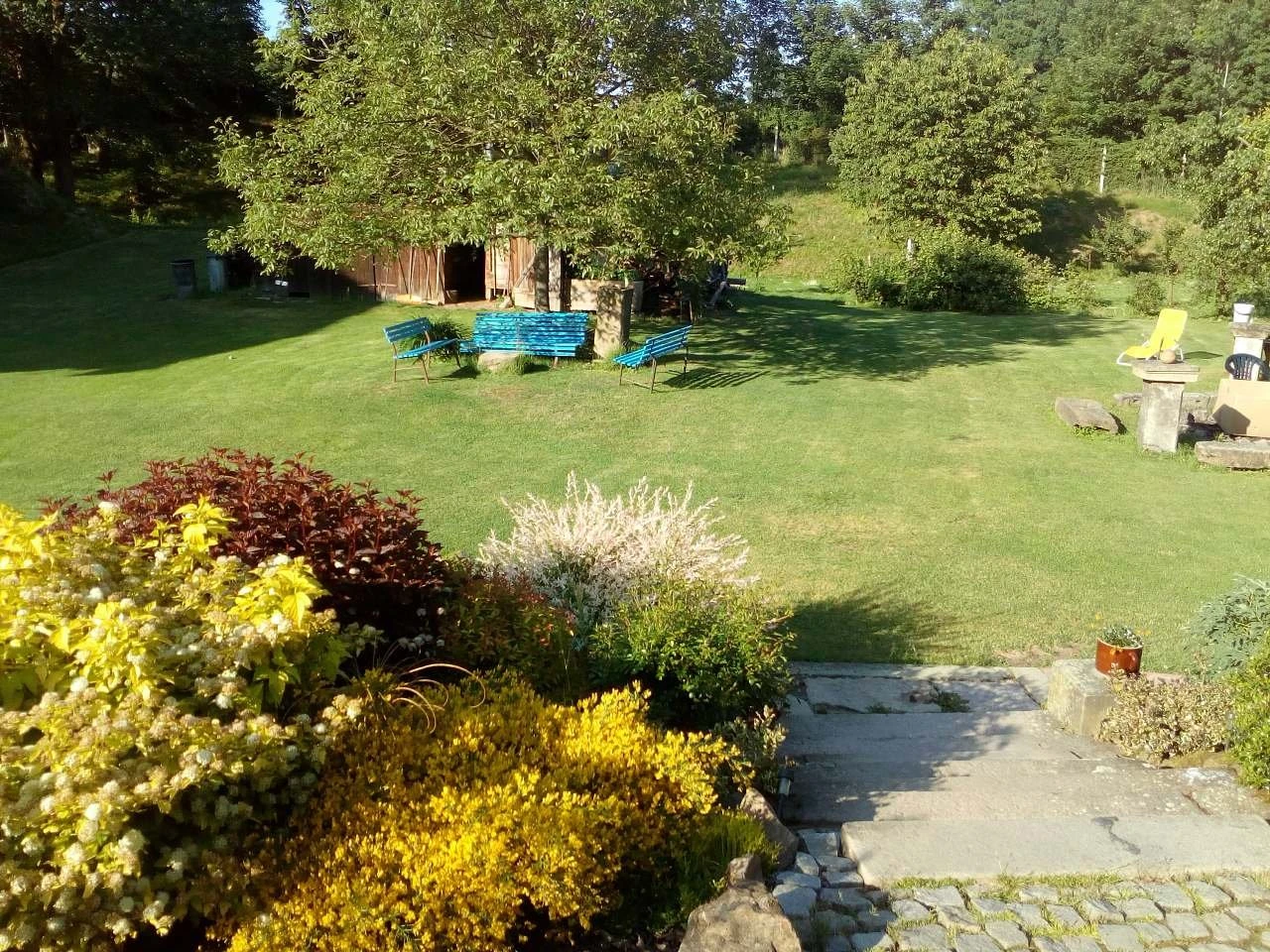 - Rozlehlý zatravněný dvůr s ohništěm, lavičkami a lehátky