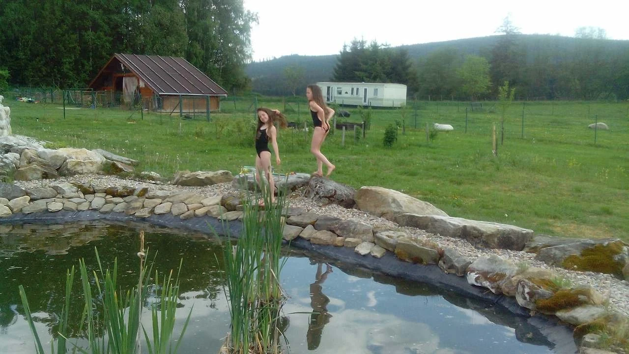 - Koupání v rybníku, soukromá travnatá pláž