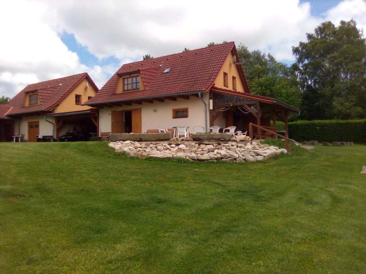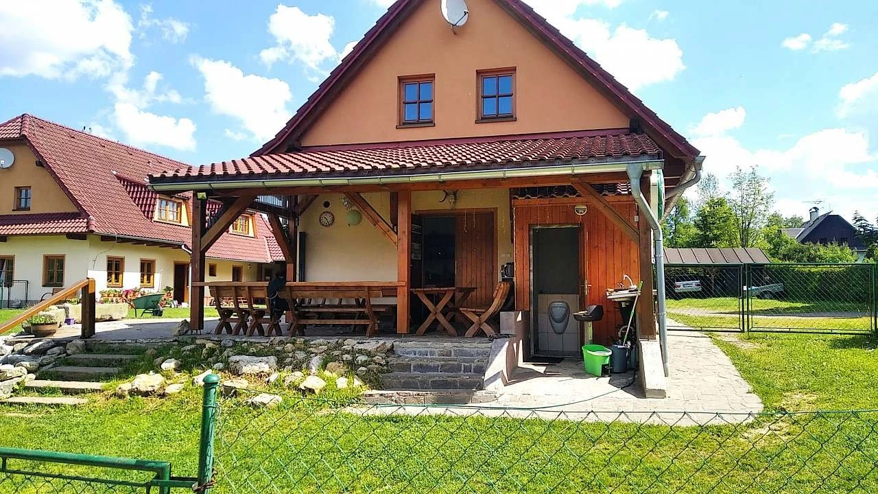 - Chalupa na samotě, u lesa, travnatá plocha