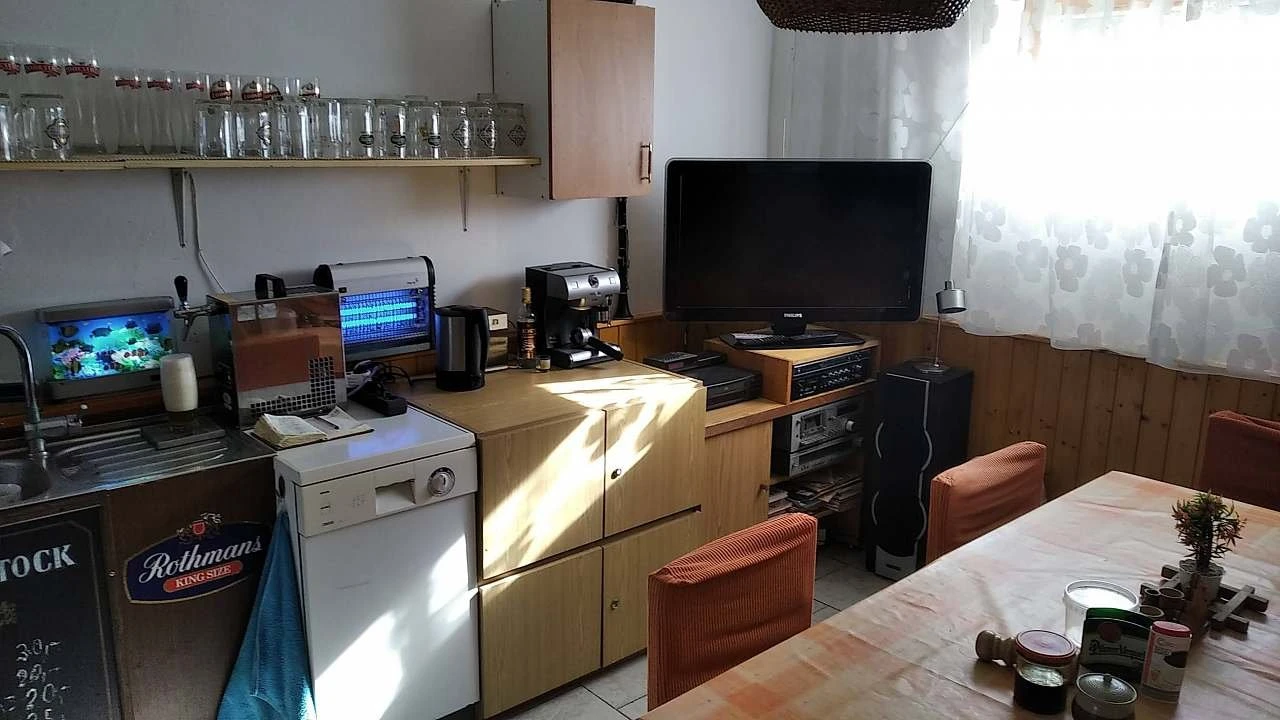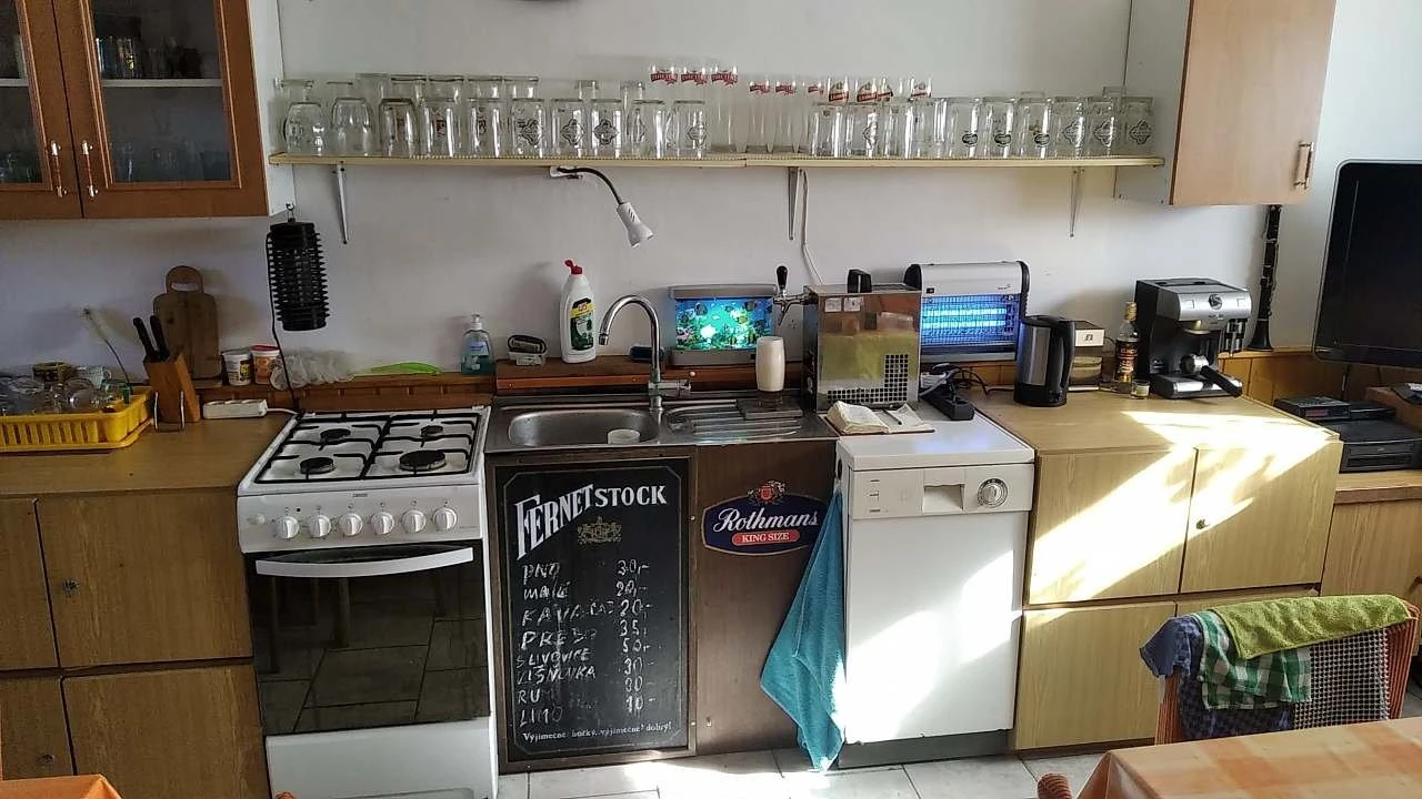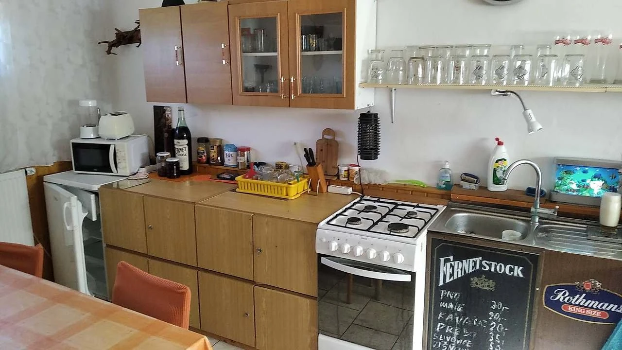 - Vybavení kuchyní: plynový sporák, el. horkovzdušná trouba, mikrovlnka, myčka (dovezte tabletu), lednička, sklokeramický vařič, varná konvice, talíře, hrnce, příbory