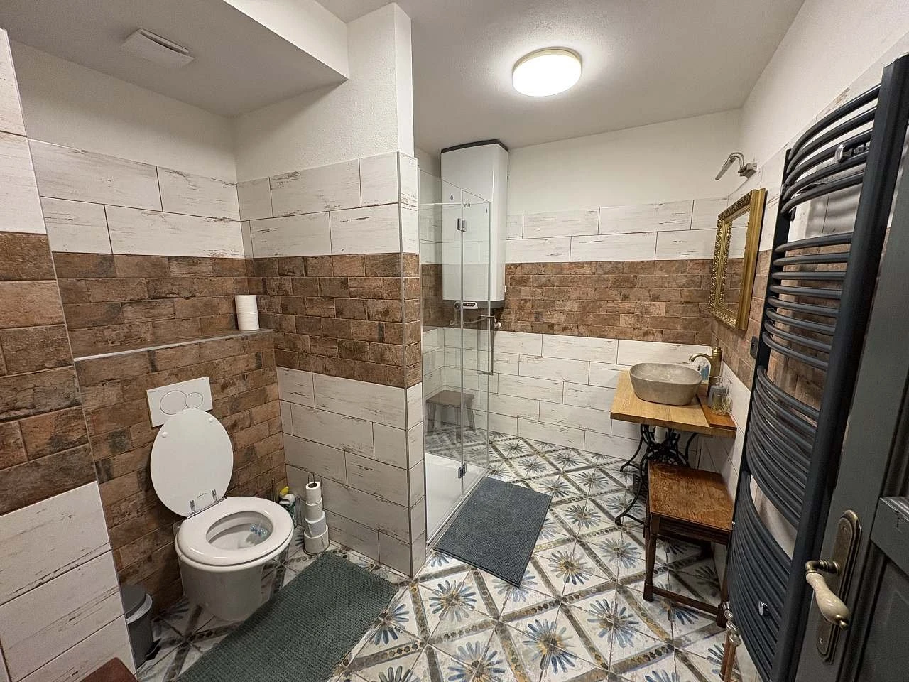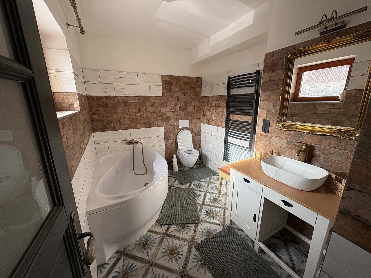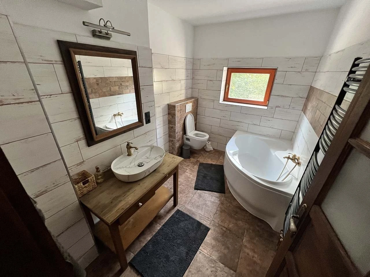 - Koupelny: dvě v každém apartmánu, jedna s vanou, druhá se sprchovým koutem