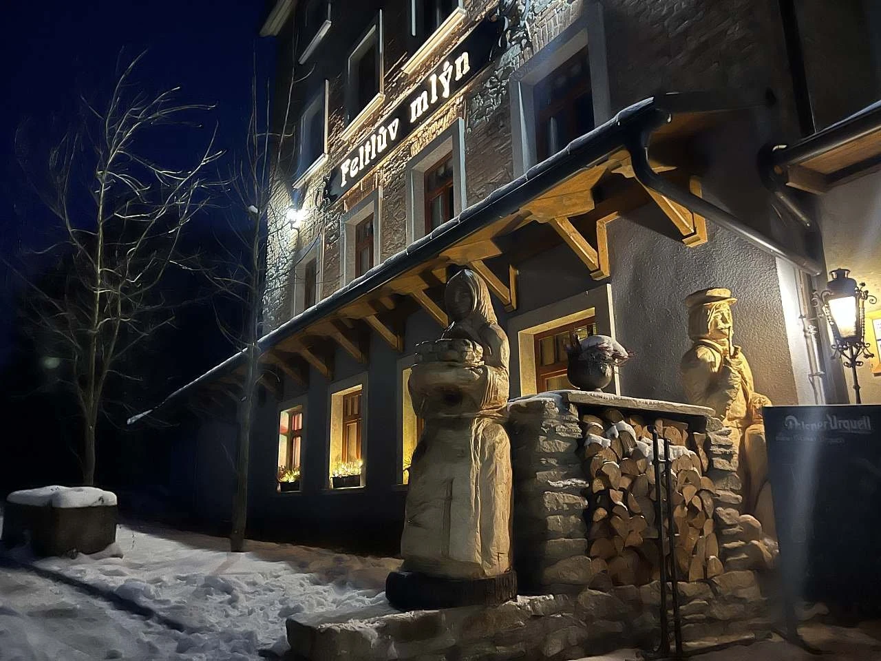 Feltlův Mlýn v Borovnici nabízí ubytování pro 1 až 13 osob ve dvou apartmánech – Rumcajs a Manka. Apartmán Rumcajs (80 m²) se nachází v prvním patře a ve dvou ložnicích umožňuje ubytovat až pět osob. Apartmán Manka (65 m²) je v druhém patře a disponuje velkou manželskou postelí; pro větší počet hostů je možné využít pokojíček Cipísek (40 m²) s kapacitou až šest osob a samostatným WC.