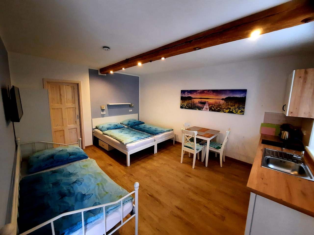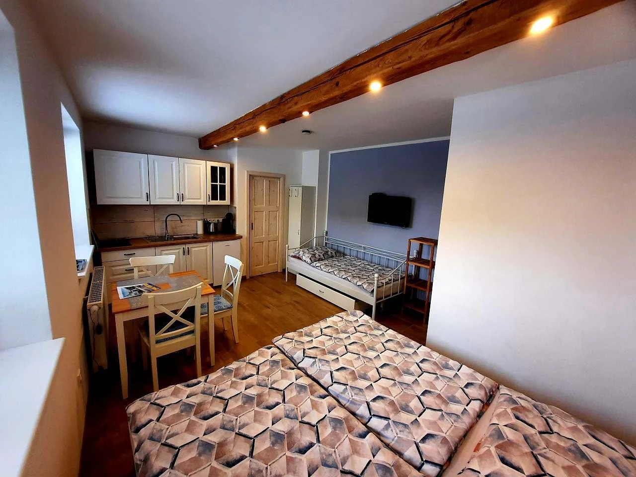 Studio je samostatná ubytovací jednotka s vlastním sociálním zařízením a kuchyňským koutem. Vhodné pro maximálně 3 osoby.
