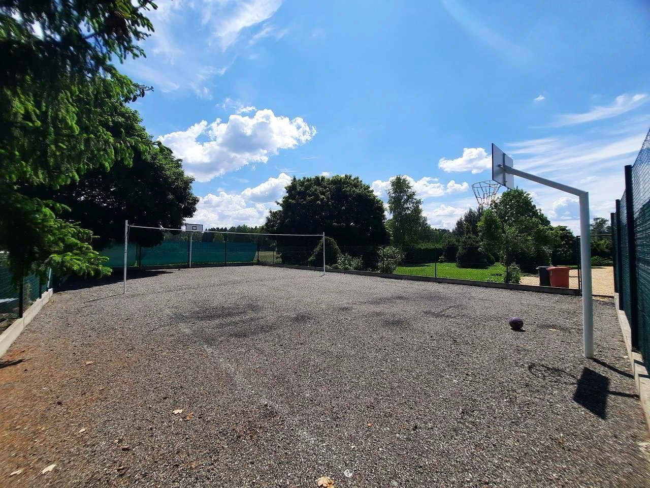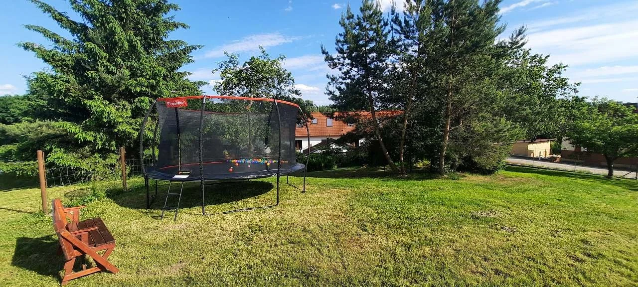 - Hřiště, houpačka, trampolína, pískoviště