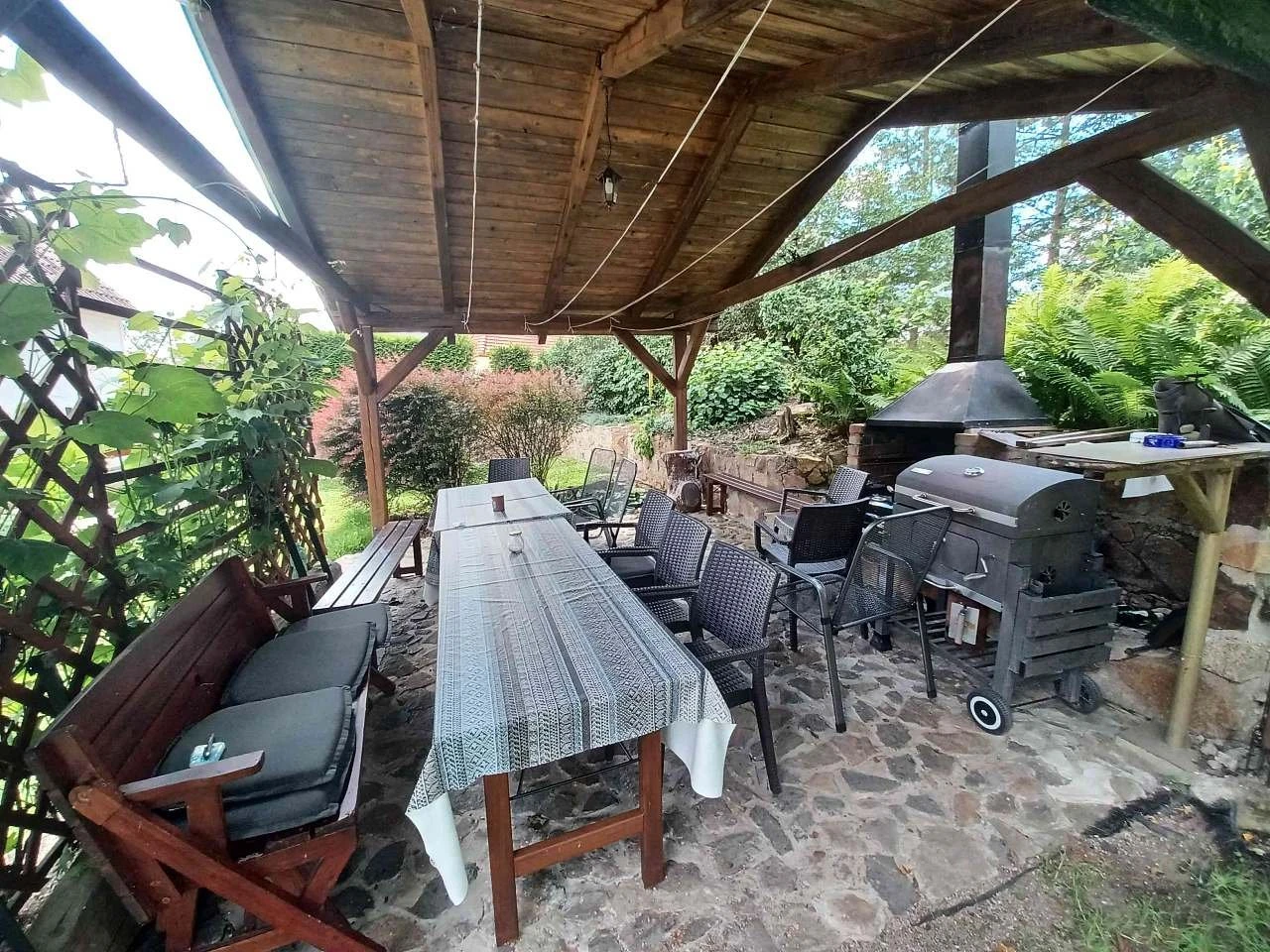 - Posezení na terase, pergola s krbem a grilem