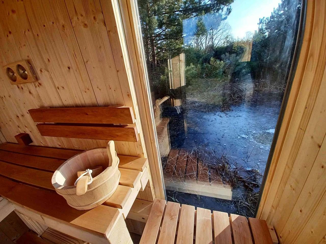 - Finská sauna: 1 400 Kč / den (dřevo/brikety na 2 hodiny v ceně)