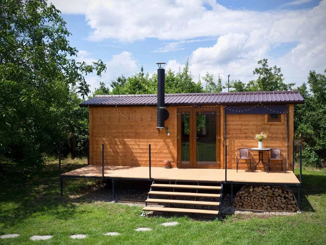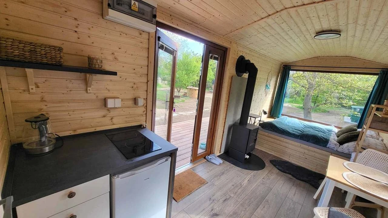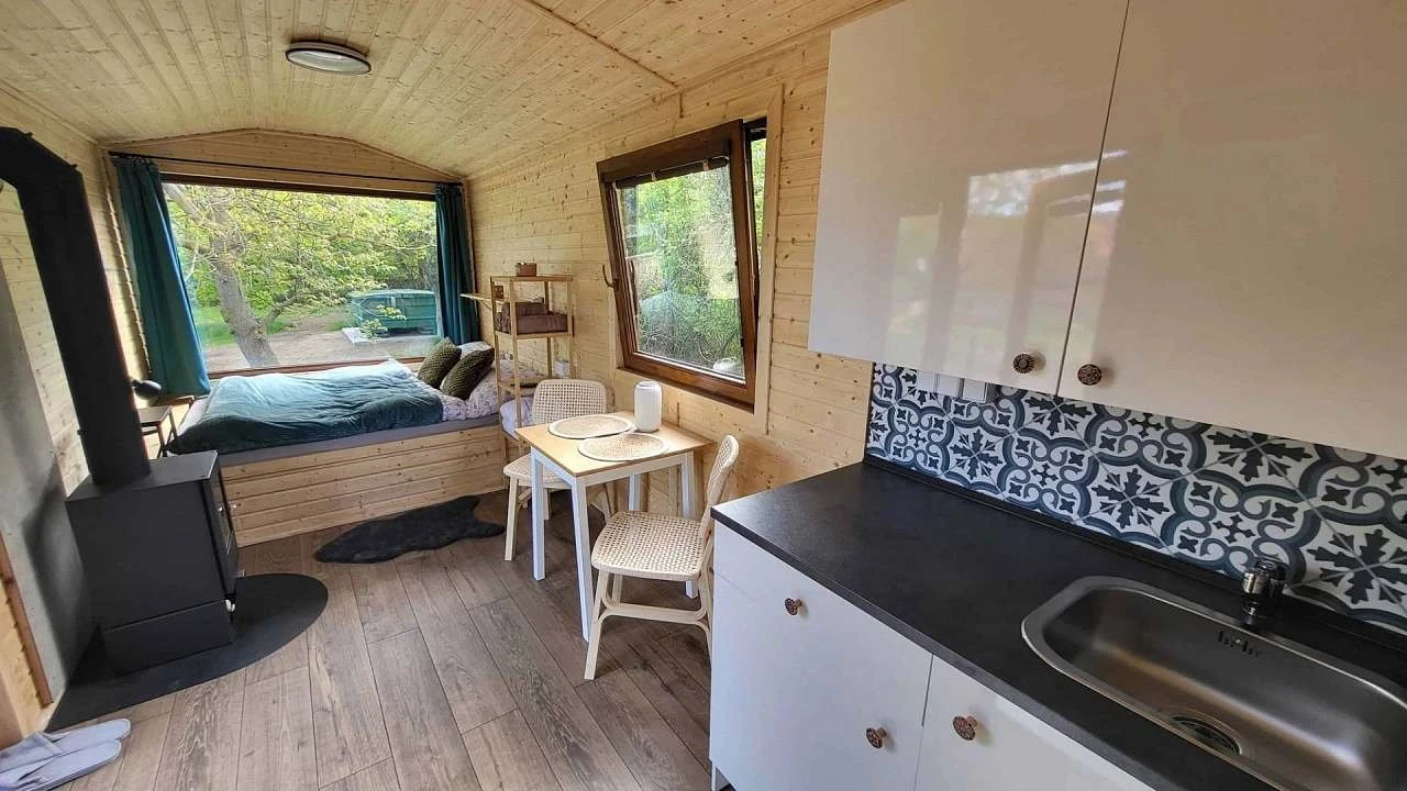 Glamping Tři oříšky v Horních Lažanech poskytuje ubytování pro 2 osoby v celoročně obyvatelné, plně vybavené maringotce. Ubytování je vhodné pro pobyt po celý rok, včetně zimních měsíců.