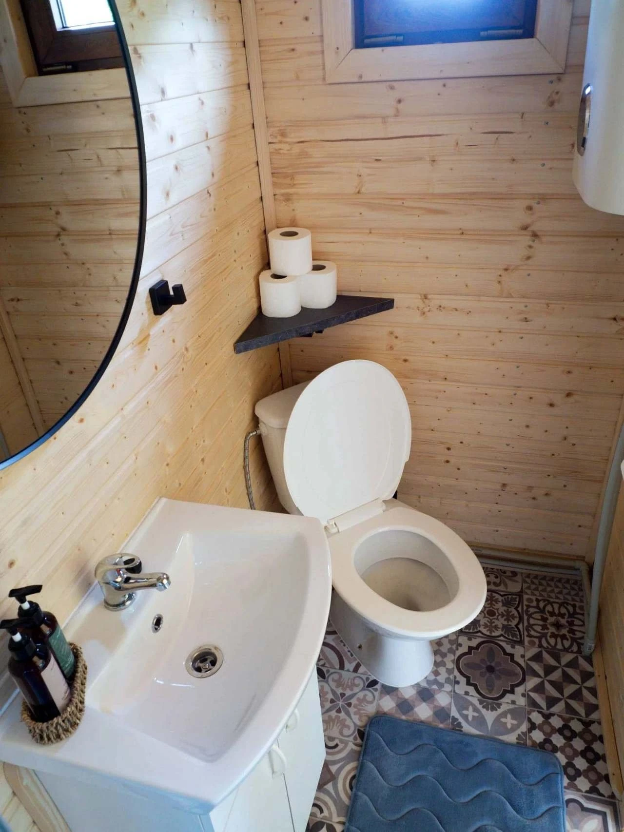 Maringotka je vybavena vlastní koupelnou se sprchovým koutem s teplou vodou, umyvadlem a WC. Sociální zařízení je umístěno přímo uvnitř ubytovací jednotky.