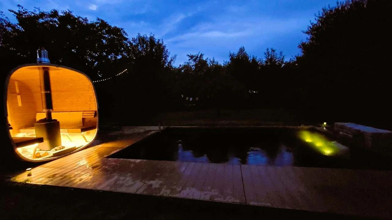Součástí ubytování je soukromé wellness, které je hostům k dispozici po dobu pobytu. Wellness zahrnuje panoramatickou finskou saunu vytápěnou dřevem, ochlazovací jezírko s lehátky a vyhřívanou káď s vířivkou. Wellness je určeno výhradně pro ubytované hosty a umožňuje nerušené využívání v soukromí.