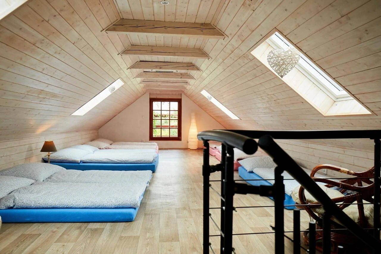Ubytování se nachází v samostatně stojícím objektu bývalé stodoly u Kozojedské hájenky, situované na rozsáhlém pozemku o velikosti více než jeden hektar. Objekt nabízí celkovou kapacitu 11 lůžek a 1 přistýlky ve dvou ložnicích. V přízemí je společenská místnost vybavená barem, kuchyňskou linkou s kompletním zázemím (sporák, lednice, vinotéka, mikrovlnná trouba, rychlovarná konvice, pípa, ledovač, kávovar, kontaktní gril) a dále krbovými kamny, kulečníkem, šipkami a toaletou. Do patra vedou točité schody, kde je jedna velká společná ložnice s devíti futonovými lůžky, koupelna s vanou a WC a samostatný pokoj s manželskou postelí, rozkládacím gaučem a kamny. V celém objektu je klimatizace a Wi-Fi připojení.