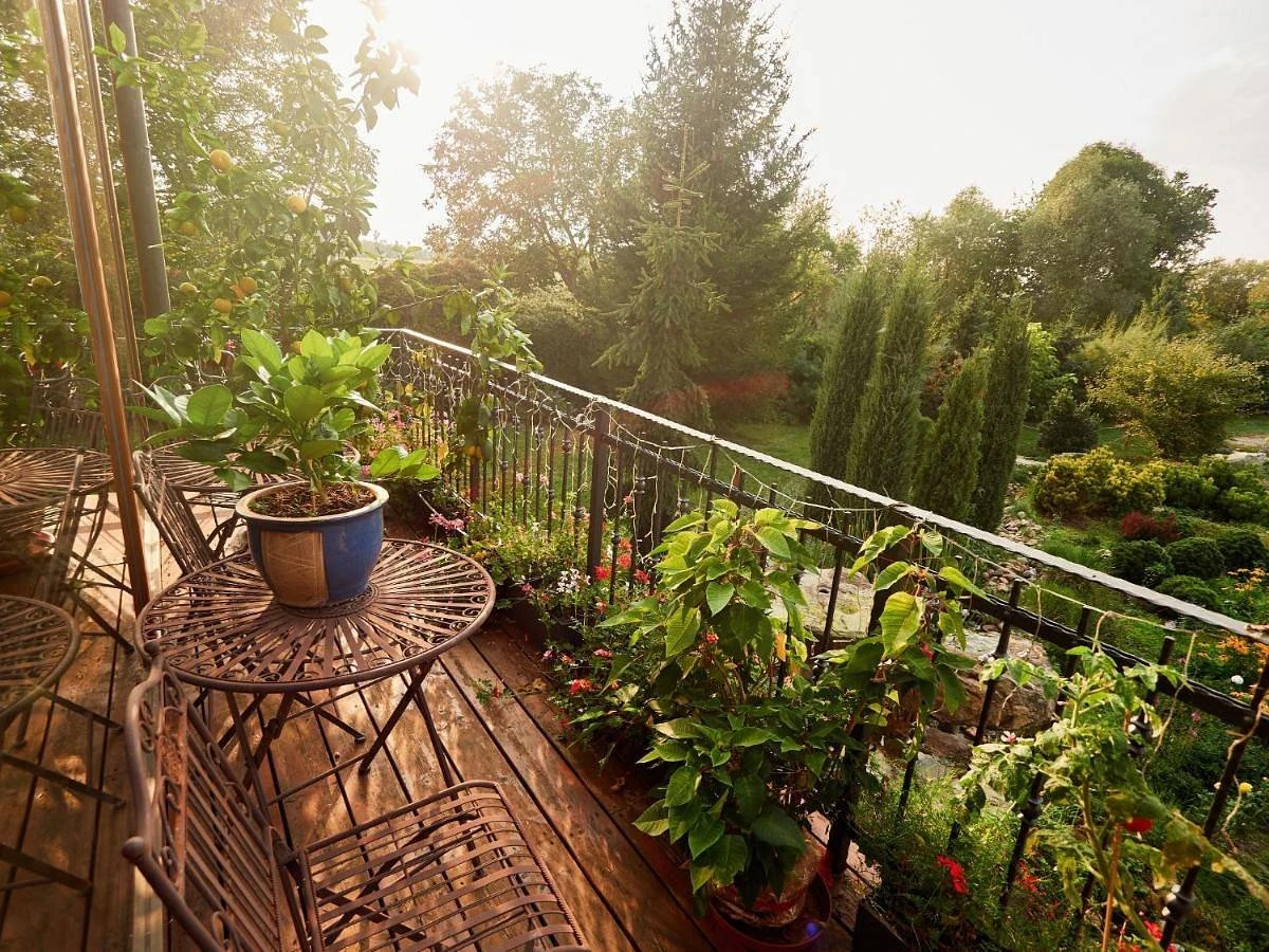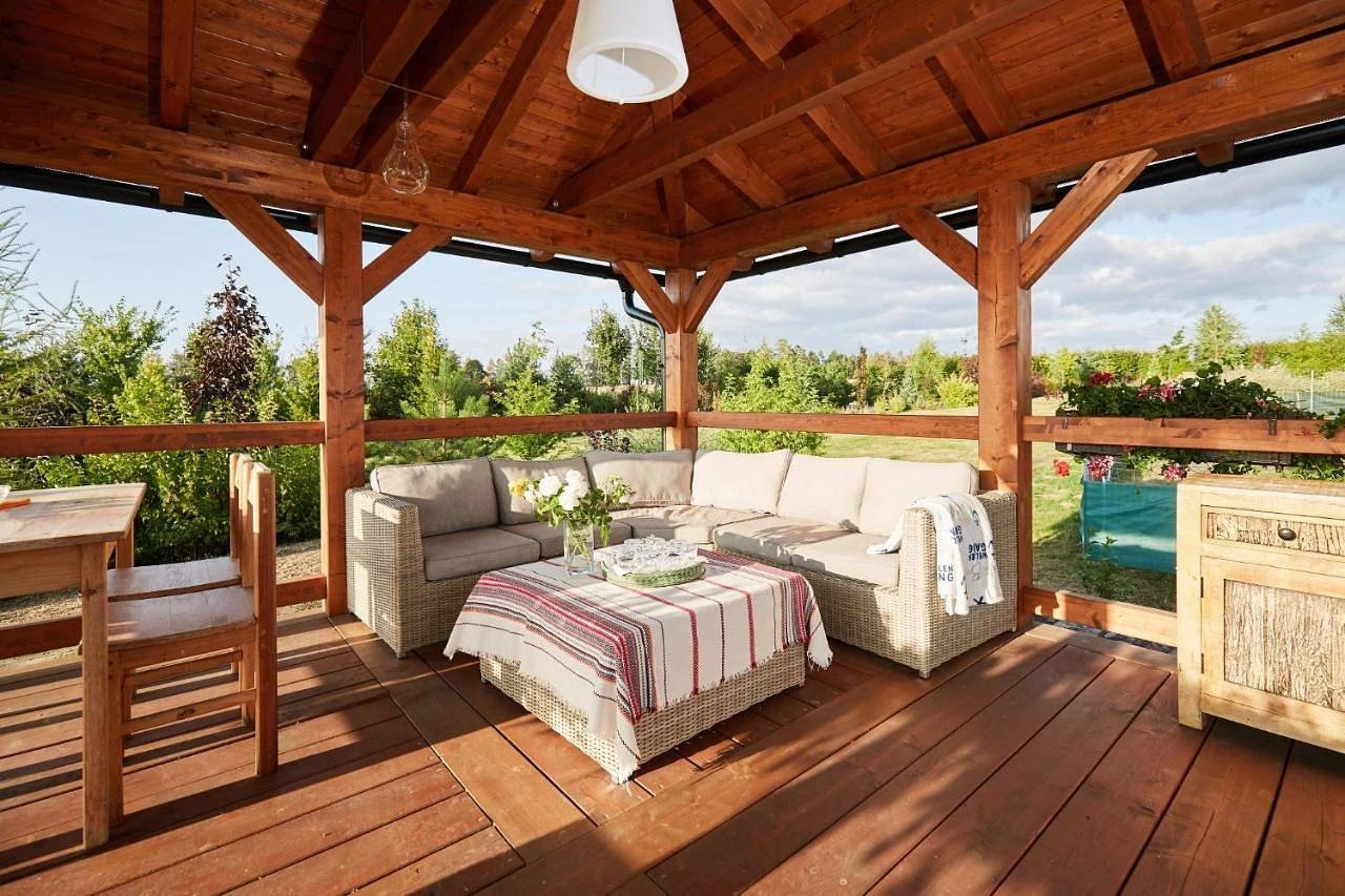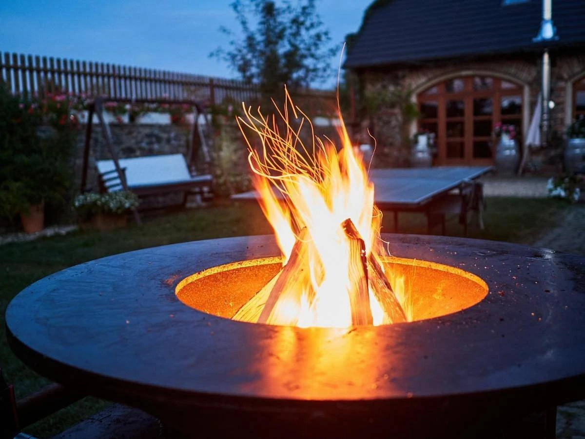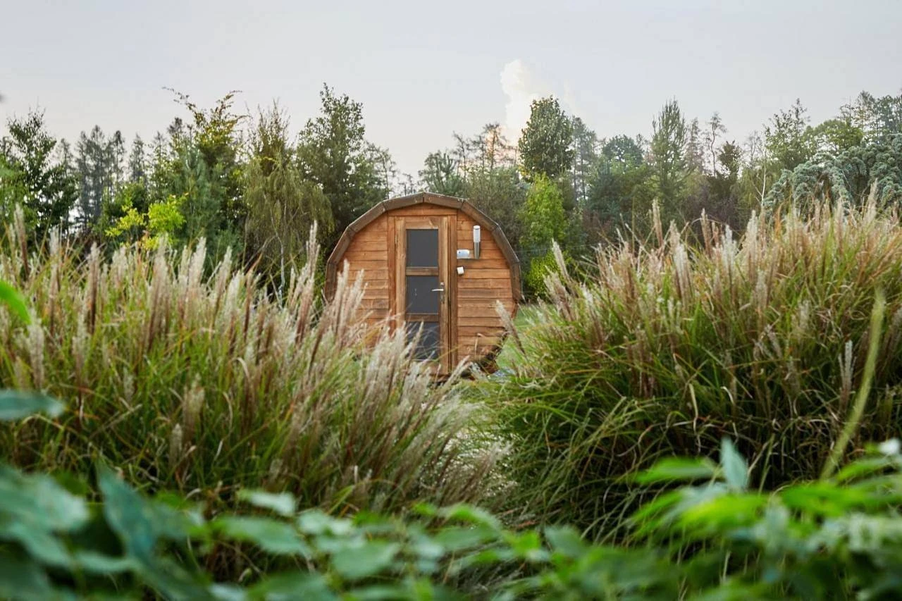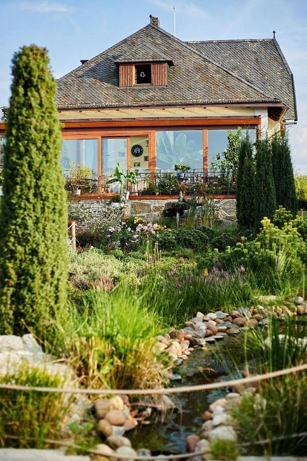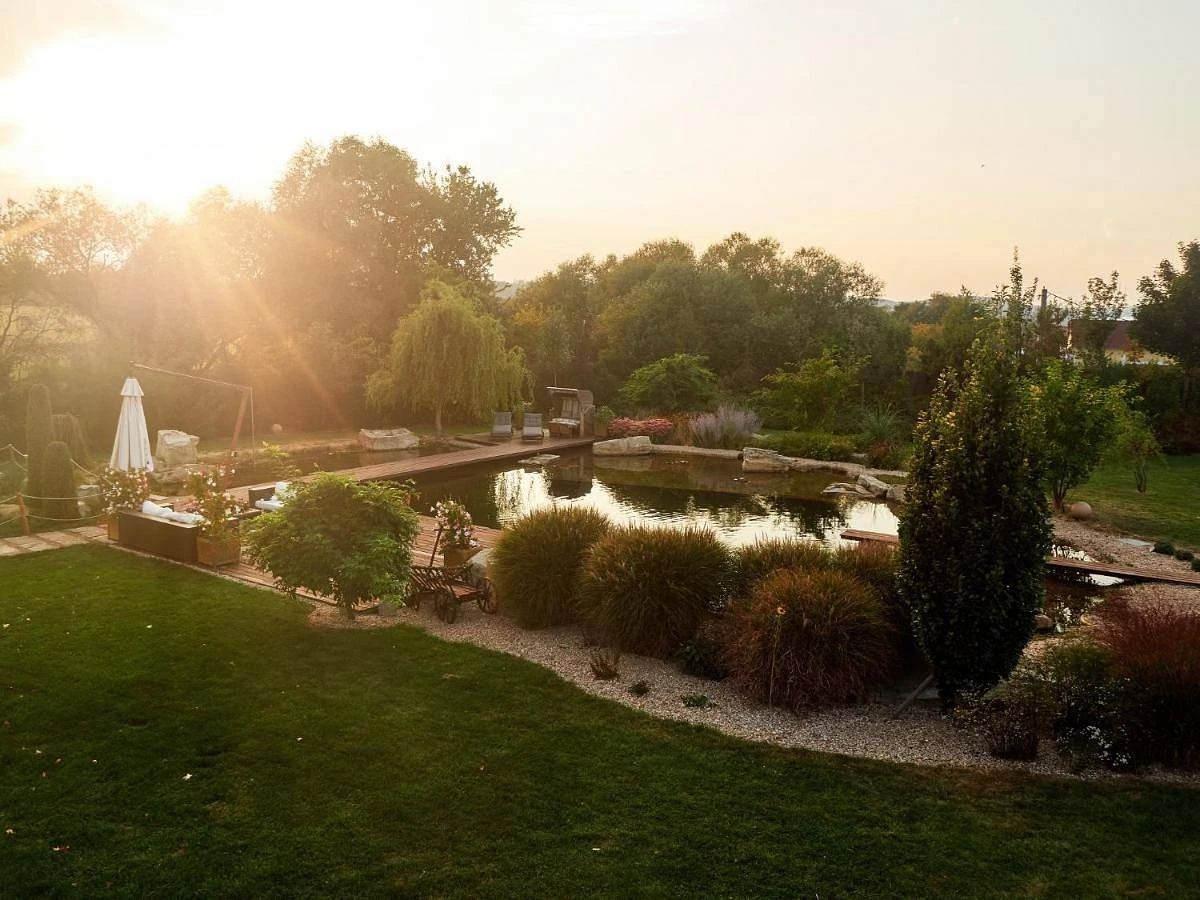 Součástí ubytování je venkovní kuchyně pod střechou, vybavená linkou, lednicí, sporákem, mikrovlnnou troubou, mrazákem a krbem. K dispozici je velký gril typu ofyr a zastřešený altán s posezením. Na pozemku se nachází přírodní koupací biotop s lehátky a místy k odpočinku. Pro děti je připraven dřevěný domek, akátová hrací sestava, pískoviště a trampolína. Areál je oplocený, vhodný pro pobyt s dětmi i domácími mazlíčky a nabízí plné soukromí, protože v době pronájmu majitel není na pozemku přítomen. Za příplatek je možné využít venkovní vířivku pro 4 osoby a samostatně stojící saunu umístěnou u biotopu.