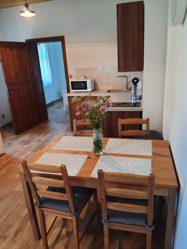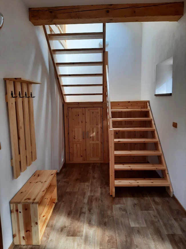 - jídelní stůl + židle (4 v 1. patře, 4 v podkroví)