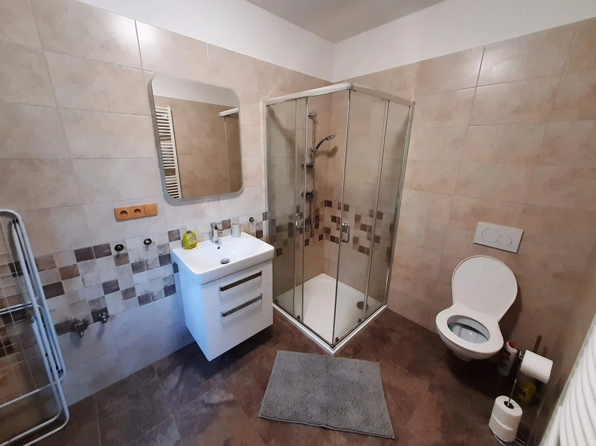 - 2× koupelna se sprchovým koutem a WC (1. patro + podkroví)