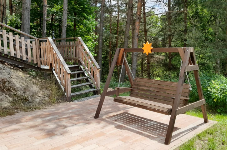 Ubytovaní mohou využívat venkovní prostory, konkrétně nekryté posezení, houpací lavici, ohniště a elektrický gril. K dispozici je bezdrátové připojení k internetu a možnost uzamčení kol v technickém zázemí. Vytápění objektu je zajištěno pomocí radiátorů napojených na tepelné čerpadlo.