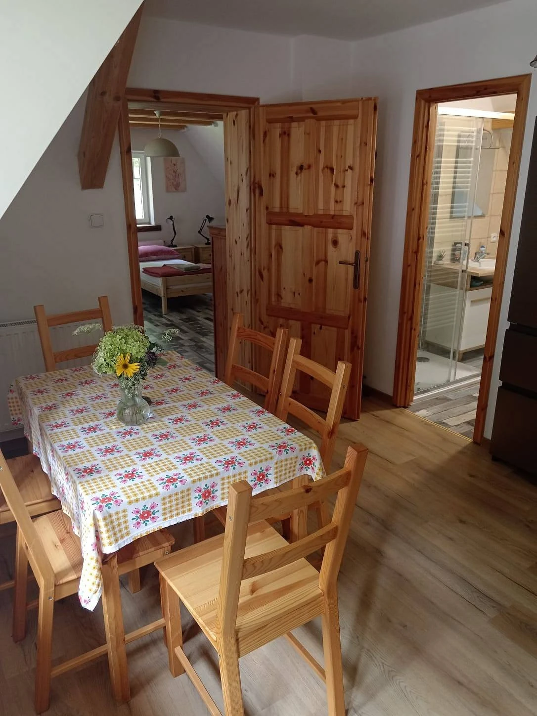 Ubytování nabízí apartmán umístěný uprostřed lesa, vhodný k odpočinku a pobytu v přírodě. K dispozici je venkovní ohniště, kde lze připravit jednoduché občerstvení, a v případě nepříznivého počasí mohou děti využít loftovou hernu. V okolí se nachází mnoho tras pro turistiku i cyklistiku, možnosti koupání a v zimním období dostupná lyžařská střediska.