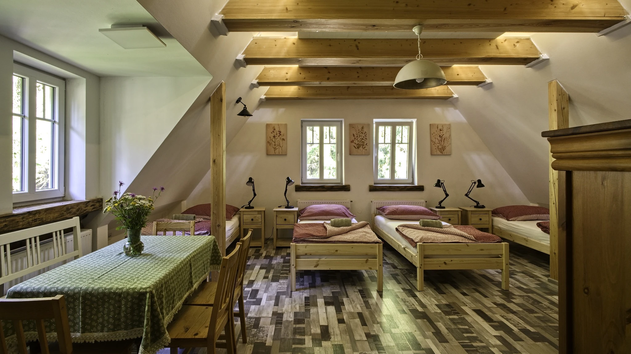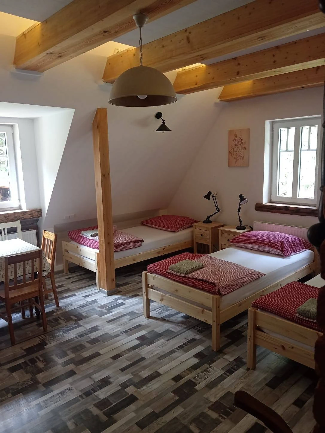 Hájenka Rounek na Vysočině nabízí ubytování až pro 7 osob v apartmánu umístěném v prvním poschodí. K dispozici jsou dva pokoje – dvoulůžkový pokoj s přistýlkou a čtyřlůžkový pokoj. Apartmán má samostatný vchod; v přízemí objektu bydlí majitelé.