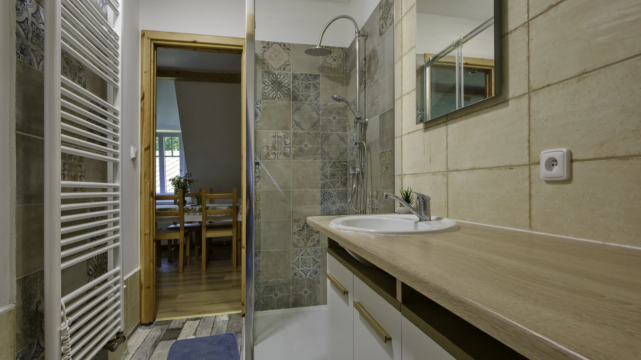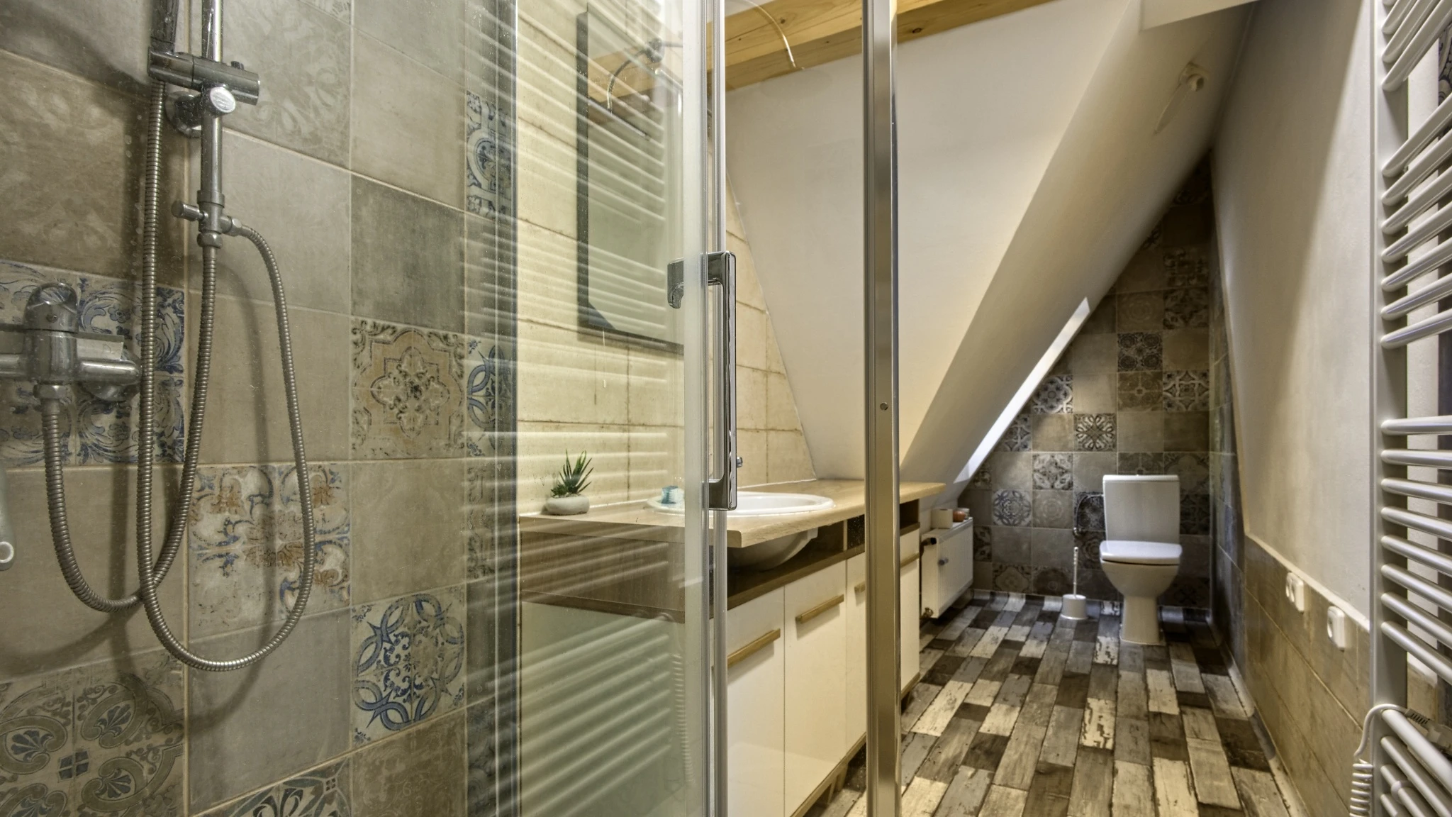 Součástí apartmánu je moderní koupelna s toaletou a navíc jedna samostatná toaleta. Objekt je vybaven ústředním topením.