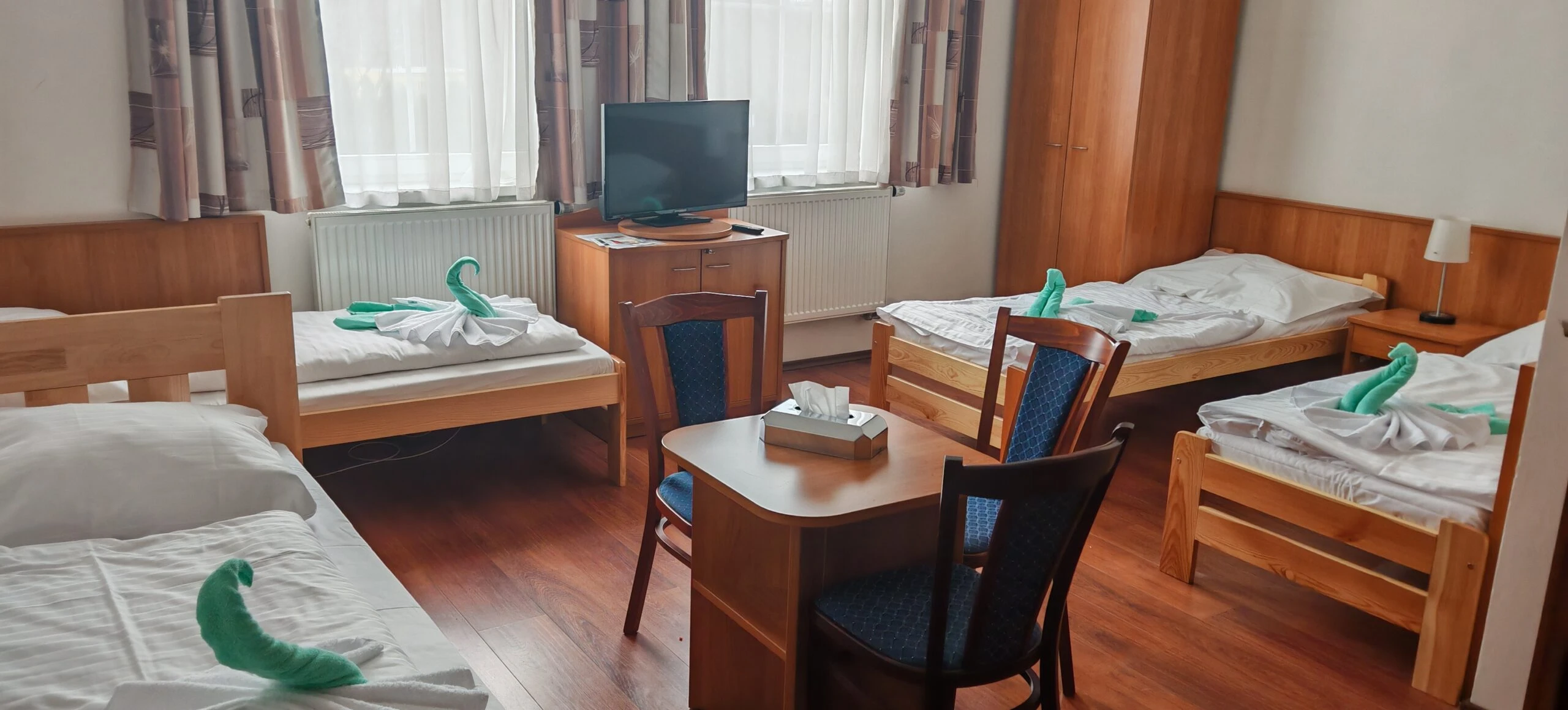 - 1 třílůžkový bezbariérový pokoj – přizpůsobený pro hosty s omezenou pohyblivostí