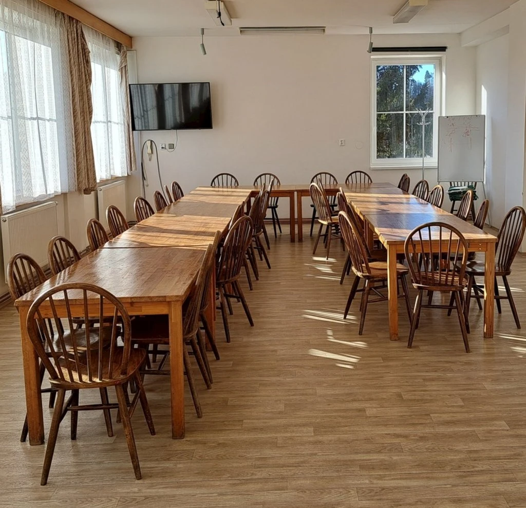 - Dvě učebny – 2× 35 míst, dataprojektor, velkoplošná projekce